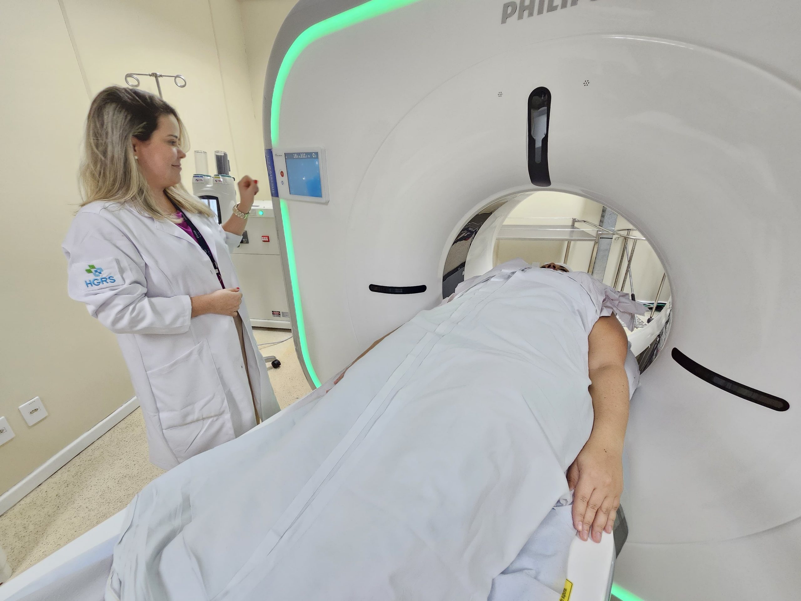 O novo equipamento de tomografia computadorizada do HGRS é de última geração, contando com 64 canais físicos e 128 cortes possibilitando varreduras de corpo inteiro, aquisições mais rápidas, e recursos que viabilizam a realização dos exames com menores doses de radiação. O aparelho conta com um avançado pacote cardíaco, que permite a formação de imagens cardiovasculares, incluindo varredura cardíaca, índice de cálcio no coração, análise de artéria cardíaca e análise da função cardíaca.