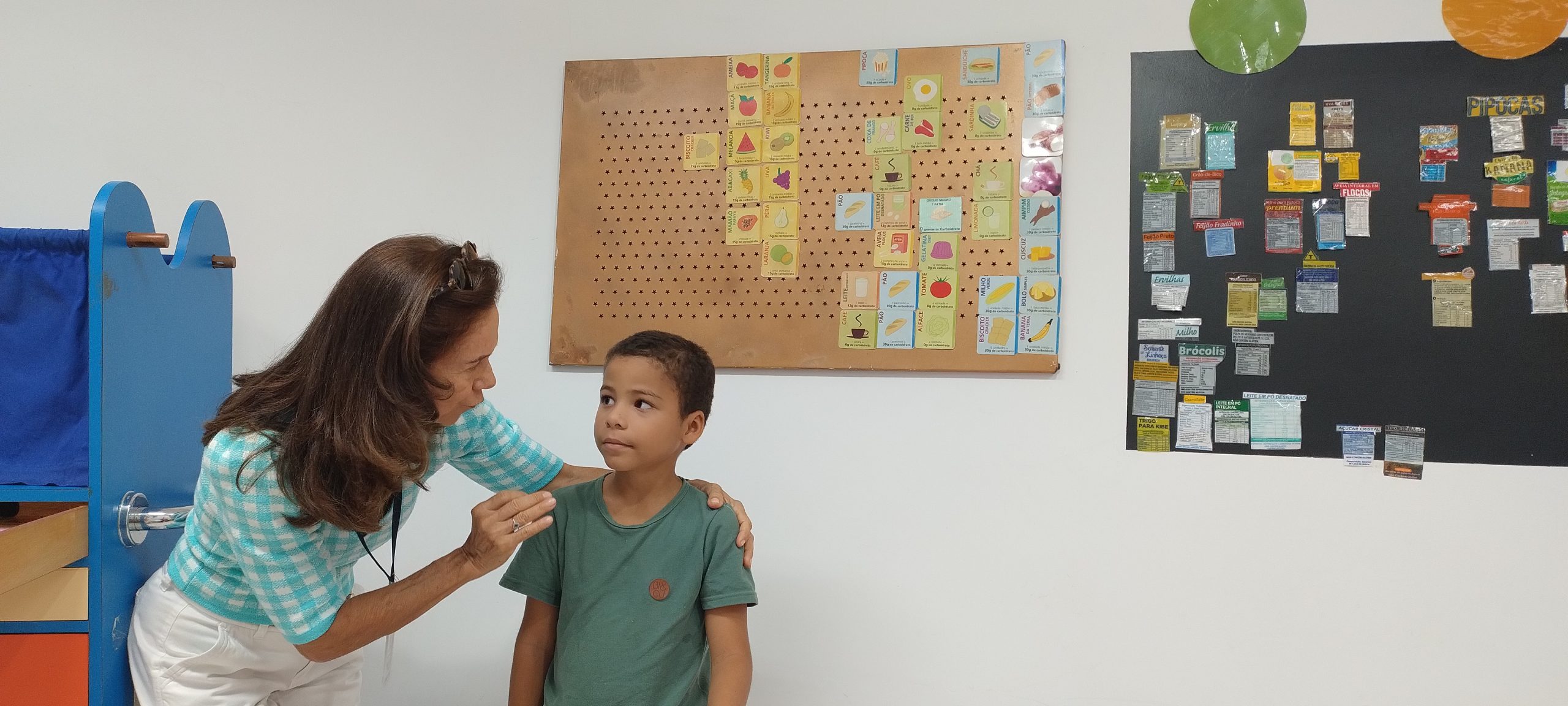 O rico material didático é muito importante para crianças e adultos. Na Brinquedoteca, a pedagoga Ceiça Cristo trabalha com as crianças e adolescentes, a partir do plano alimentar ( é pessoal) elaborado pelas nutricionistas, a contagem de carboidratos, ensinando-as a variar o cardápio. No caso de crianças de pouca idade, a participação da família é muito importante, explica Ceiça Cristo, porque o comportamento dos pais é fundamental para adoção de hábitos saudáveis.