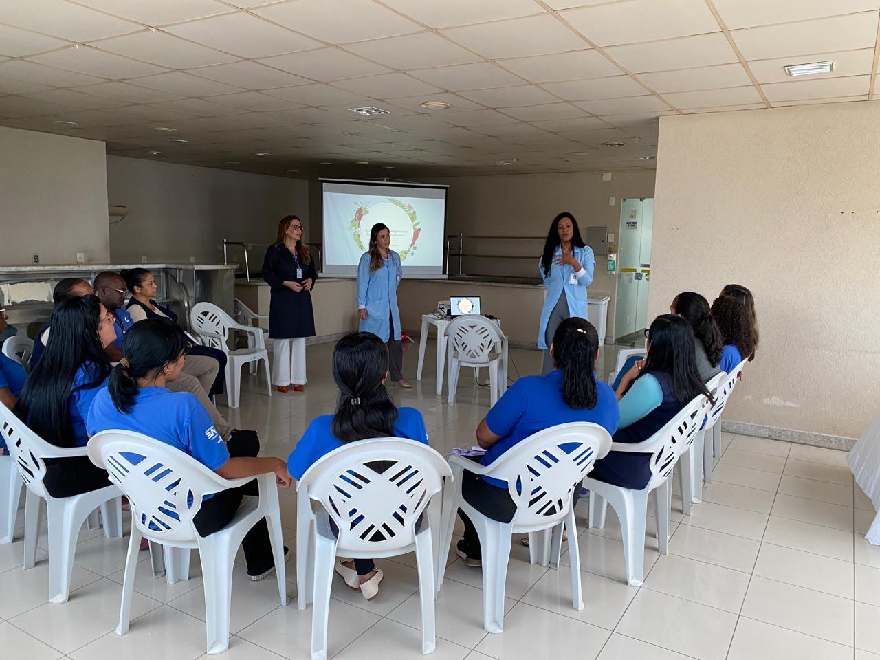 Durante a capacitação, são promovidas dinâmicas que estimulam o sentimento de coletividade e a reflexão sobre as conexões estabelecidas entre as pessoas enquanto realizam seus afazeres profissionais. “Como cada pessoa se vê no ambiente de trabalho? Olhar para si mesmo e entender que estamos todos interligados é essencial”, acrescenta Juciane, que contou com a presença de duas facilitadoras convidadas para o primeiro encontro, a enfermeira Miriam Macedo e a psicóloga Ludimilla Souza.