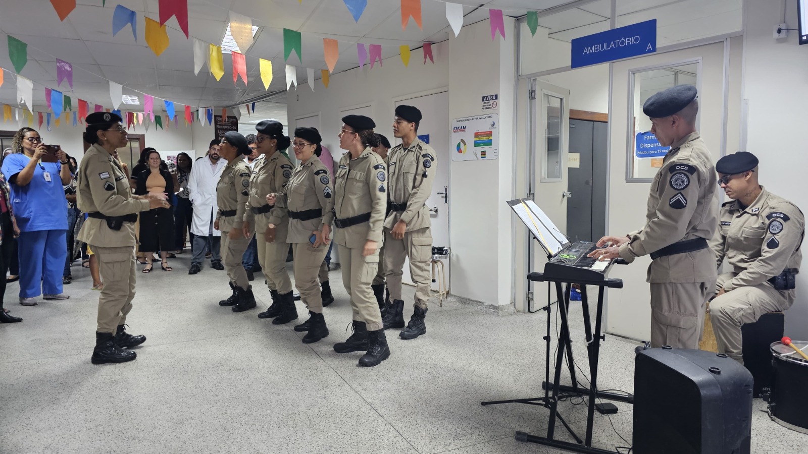 Outro momento especial do evento foi a apresentação do coral Sakura, composto por pacientes da unidade. Formado há apenas um mês e acompanhado pelo maestro, o soldado da PM Ademar Costa, o grupo animou o espaço. O coral é uma iniciativa do núcleo de fisioterapia do Cican. A manhã de festa ainda contou com as apresentações de duas pacientes especiais: a vocalista do bloco Afro Malê Debalê, Karina Neves, e Gisele de Oliveira Souza, conhecida nos corredores da unidade, por sempre estar caracterizada, cantar e dançar em cada ida ao Centro. O aniversário da unidade ainda teve a banda da Polícia Militar.
