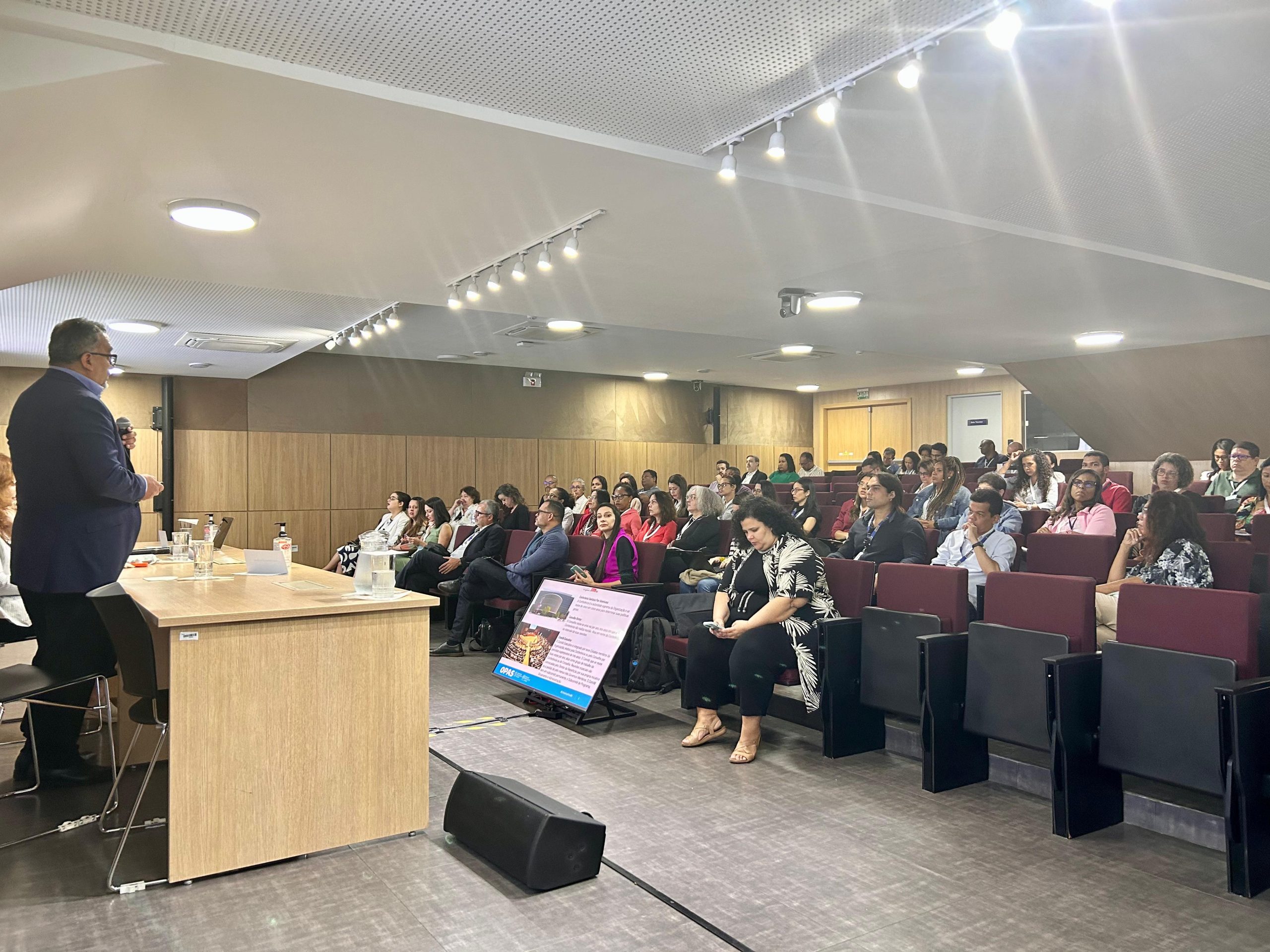 A primeira palestra do dia, sobre a importância da economia da saúde para sustentabilidade do SUS, contou com a presença o coordenador de Sistemas e Serviços de Saúde da Organização Pan-Americana da Saúde (Opas) no Brasil, Júlio Pedroza, e da diretora do Departamento de Economia da Saúde, Investimento e Desempenho (Dised), vinculado à Secretaria de Ciência, Tecnologia e Inovação e do Complexo Econômico-Industrial da Saúde (Sectics) do Ministério da Saúde.