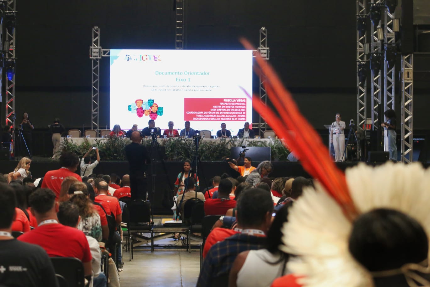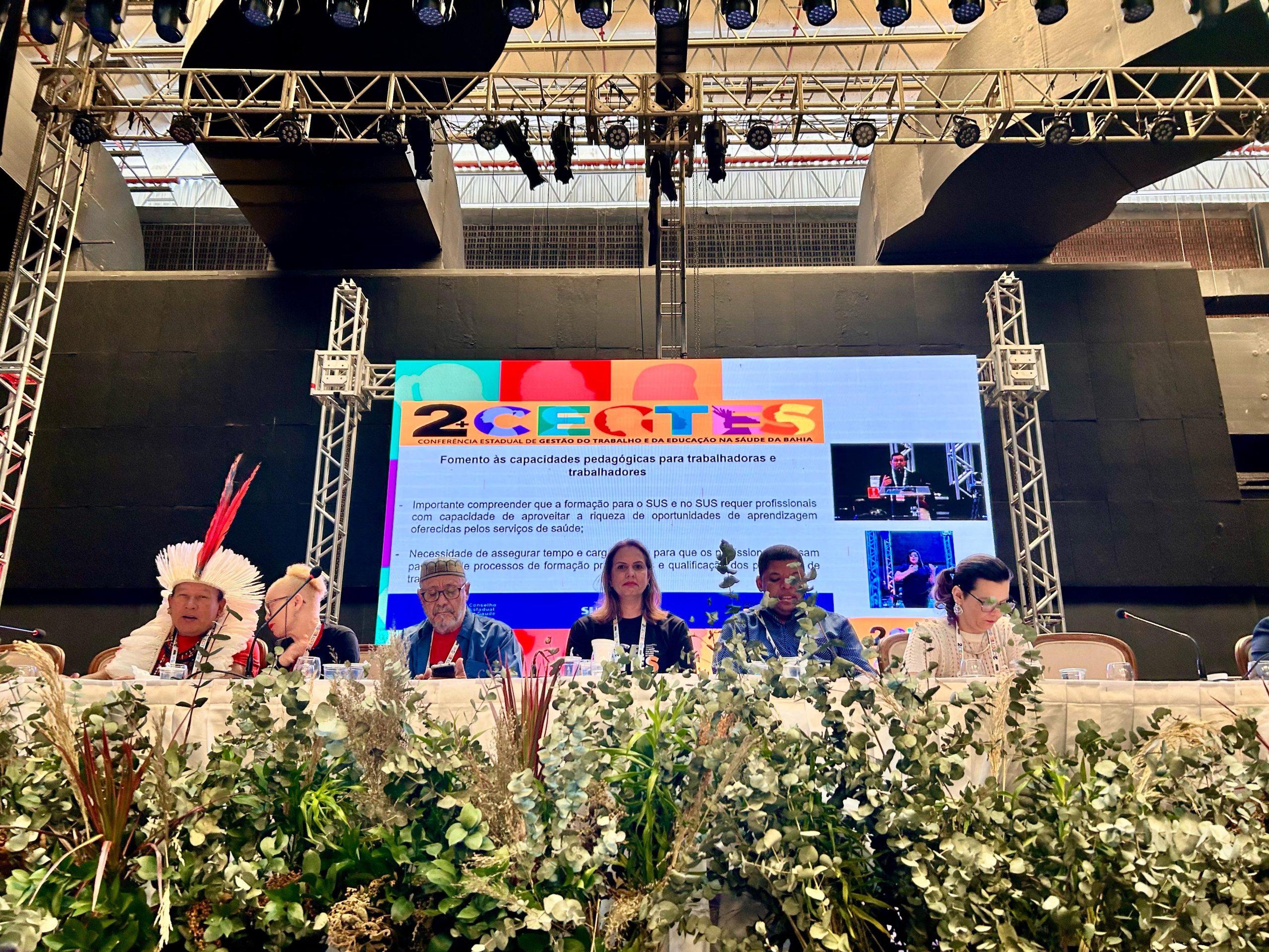 Com a presença do subsecretário da Saúde do Estado, Paulo Barbosa, a mesa de discussão abriu os trabalhos com exposições sobre três eixos temáticos: Democracia, controle social e o desafio da equidade na gestão participativa do trabalho e da educação na saúde; trabalho digno, decente, seguro, humanizado, equânime e democrático no SUS: uma agenda estratégica para o futuro da Bahia e do Brasil; e educação para o desenvolvimento do trabalho na produção na saúde e do cuidado das pessoas que fazem o SUS acontecer: a saúde da democracia para a democracia da saúde.