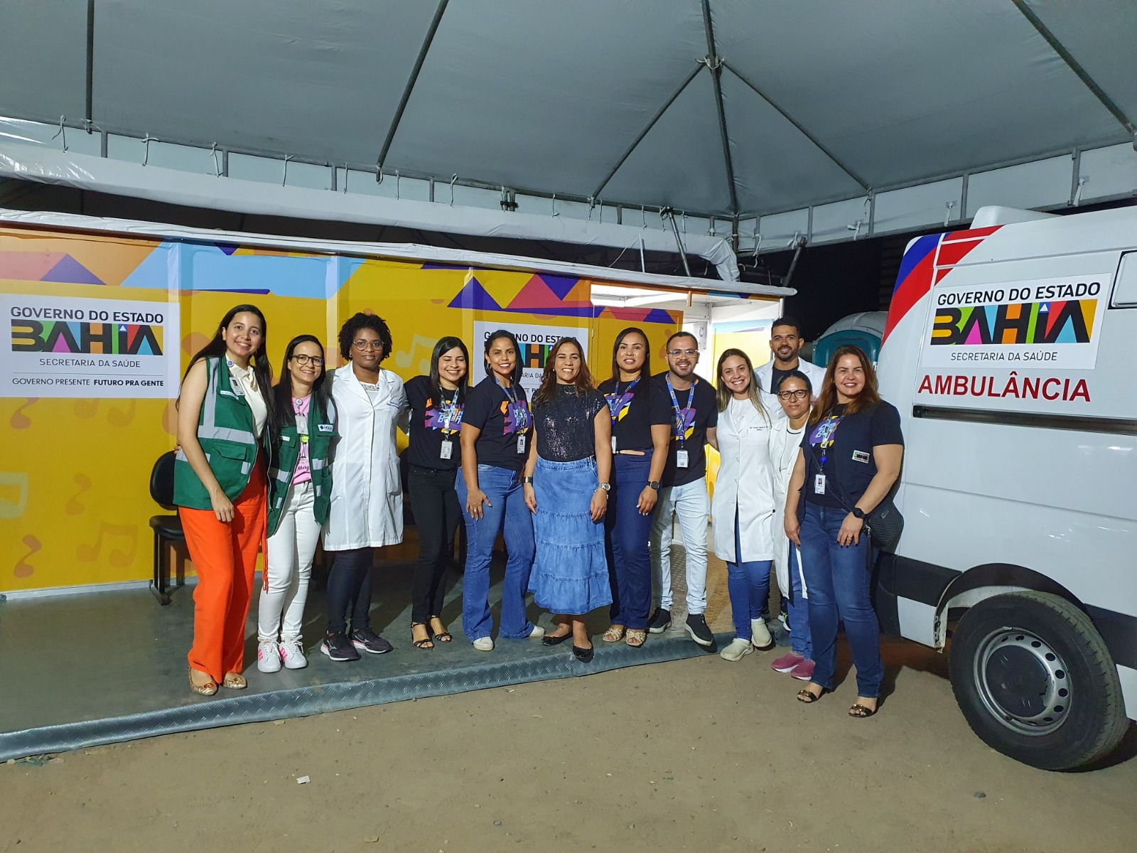 Para atender ao público do festival, foi destacada uma equipe formada por 8 profissionais assistenciais, incluindo médicos, enfermeiro, técnicos, assistente social e condutor da ambulância; além de um profissional administrativo para suporte logístico e um engenheiro clínico para garantir o funcionamento adequado dos equipamentos.