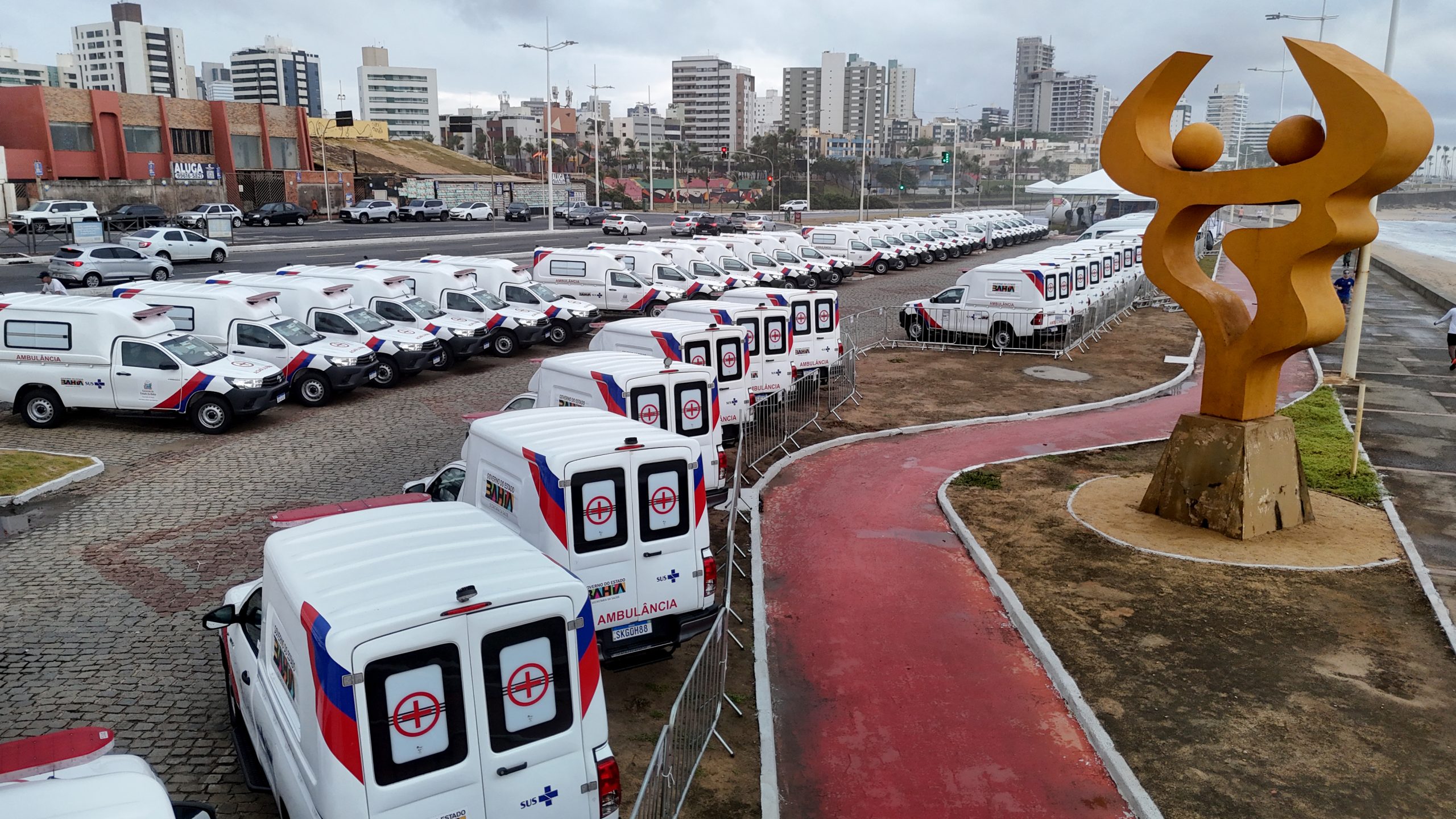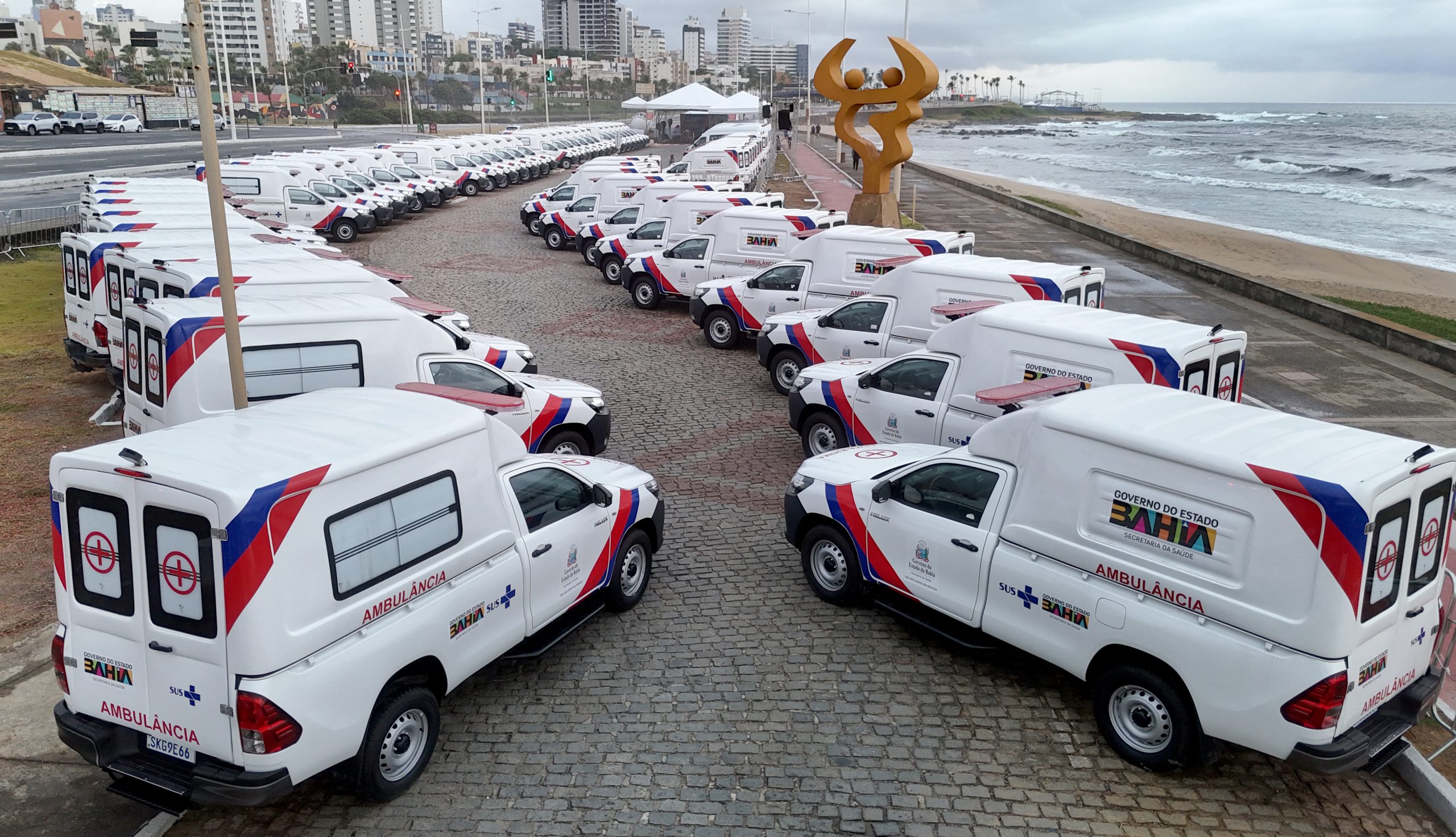 Fortalecendo a assistência à saúde nos municípios baianos, o governador Jerônimo Rodrigues e a secretária da Saúde do Estado, Roberta Santana, entregaram dezenas de ambulâncias, nesta terça-feira (24), em evento realizado no Jardim dos Namorados, no bairro da Pituba, em Salvador. Durante a solenidade, foram entregues 71 novos veículos, entre 67 ambulâncias e quatro vans para Tratamento Fora de Domicílio (TFD), contemplando 65 municípios e seis unidades de saúde. O investimento ultrapassa os R$ 17 milhões.