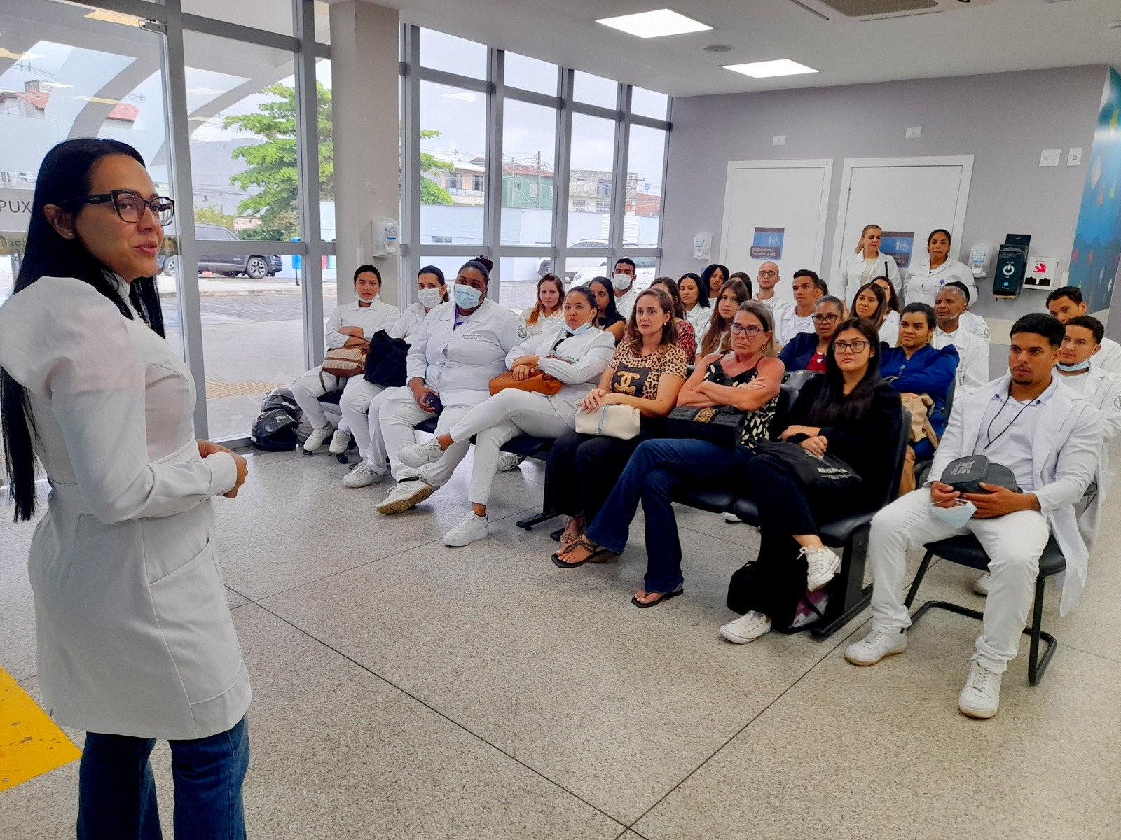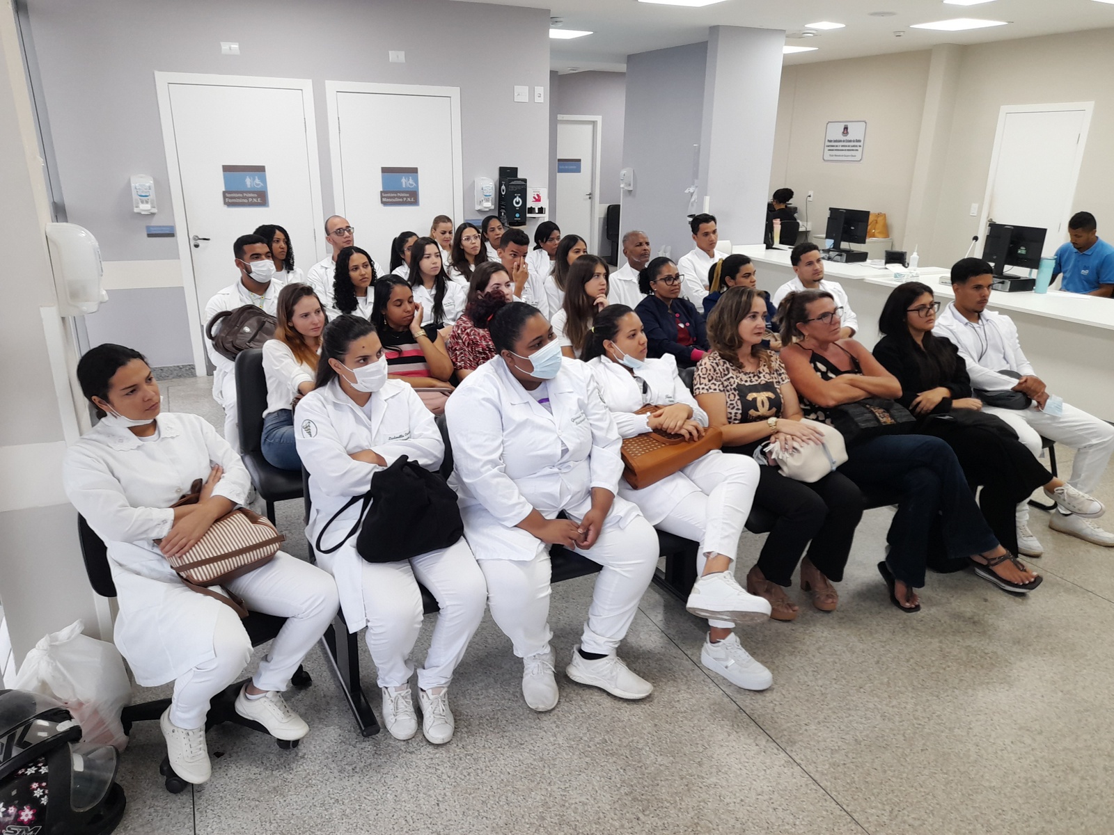 O Hospital Materno-Infantil Dr. Joaquim Sampaio, em Ilhéus, recebeu nesta terça-feira (01) pela manhã a primeira turma de estagiários do décimo e último semestre dos cursos de Fisioterapia, Farmácia e Nutrição da Faculdade Madre Thais e da Faculdade de Ilhéus. O grupo participou do treinamento introdutório, quando é apresentado o conjunto de práticas educacionais e orientadoras, com o objetivo de promover a integração do servidor com os estudantes.