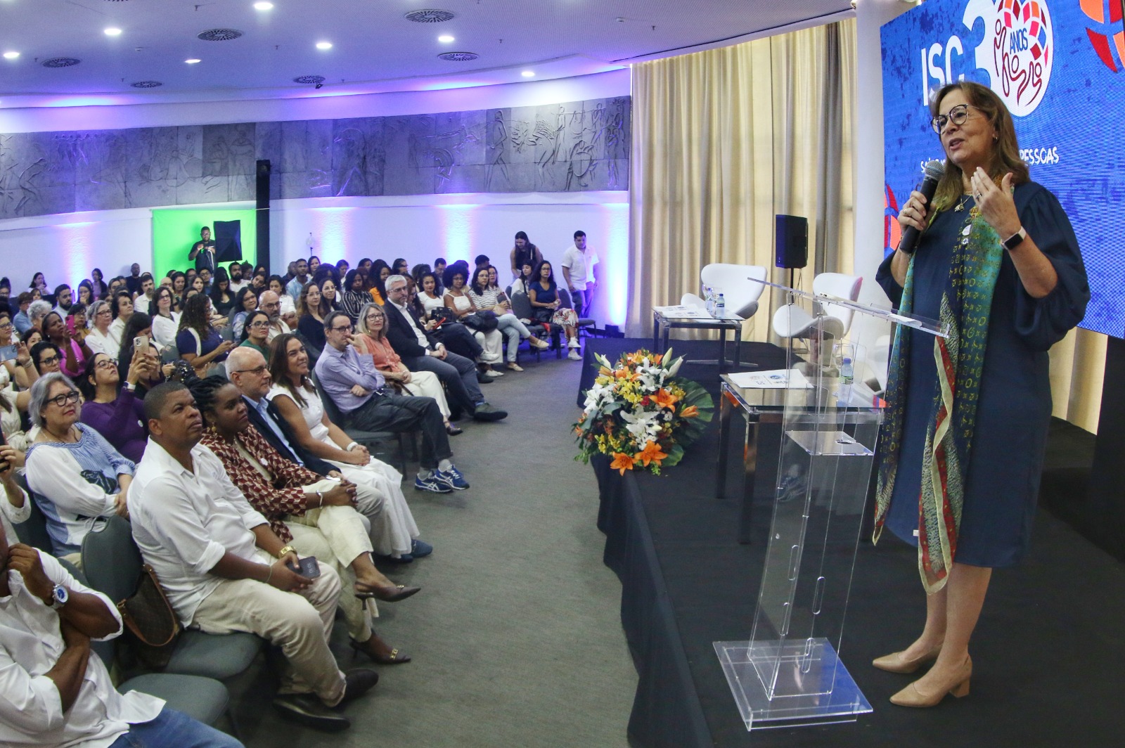 Durante o congresso que marcou a celebração dos seus 30 anos do ISC, a secretária Roberta Santana enalteceu o papel do Instituto de Saúde Coletiva da UFBA como instituição acadêmica, mas também classificou a entidade como pilar para a construção das políticas públicas de saúde da Bahia e do Brasil. “Aqui formam-se profissionais, mas também toda produção feita pelos seus alunos é sempre de construção de uma política mais fortalecida, universal e de forma igual para todos aqui na Bahia. Fica aqui o meu compromisso e agradecimento, em nome do governador Jerônimo Rodrigues, a toda dedicação da equipe que aqui trabalha pela construção de um SUS cada vez mais fortalecido na nossa Bahia”, destacou.