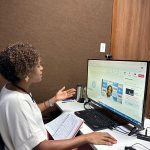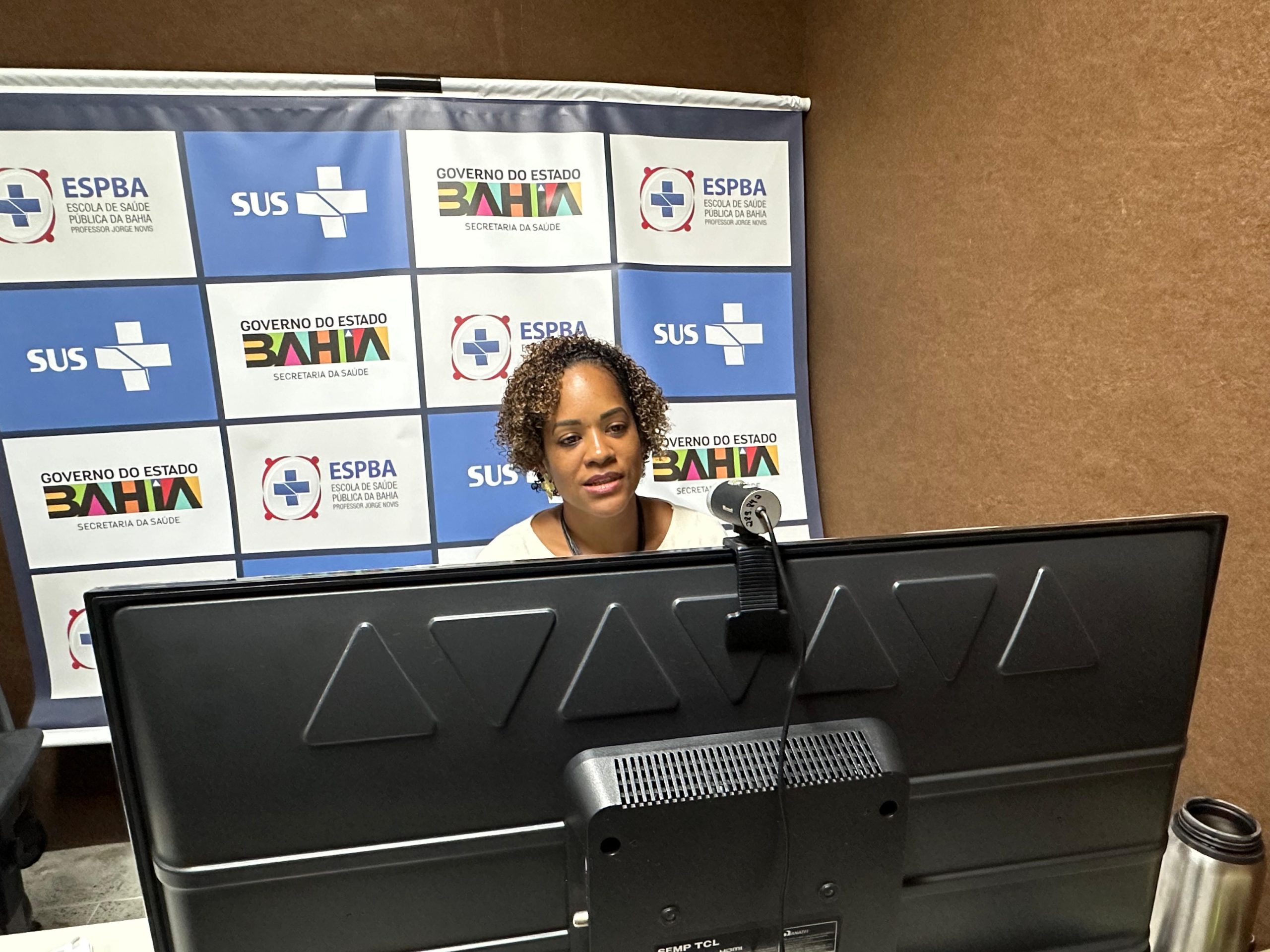 “É possível constituir no nosso cotidiano, sujeitos críticos, pensantes e reflexivos [que sejam antirracistas]. Por exemplo, hoje estamos na Escola de Saúde Pública, que realiza cursos que tem pautado a importância de transversalizar nossas ações”, ressaltou Caroline Reis durante sua fala.