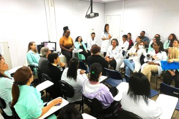 “Velhices Negras: Reflexões sobre interseccionalidade no atendimento à pessoa idosa” foi o tema da sessão científica realizada na manhã desta terça-feira (27) no Centro de Referência Estadual de Atenção á Saúde do Idoso (CREASI), com a presença da psicóloga Naylana Paixão, mestre e doutoranda em Psicologia do Desenvolvimento, pela Universidade Federal da Bahia (UFBA) e especialista em Saúde da Pessoa Idosa, que trouxe um recorte da sua dissertação para os profissionais da Unidade.