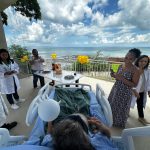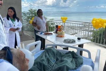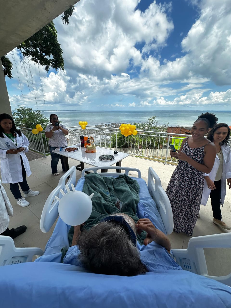 A vista para Baía de Todos-os-Santos do Espaço Ecumênico do HSM foi cenário para a comemoração, que reuniu muita alegria e emoção, com direito a bolo, docinhos e o colorido dos balões.
