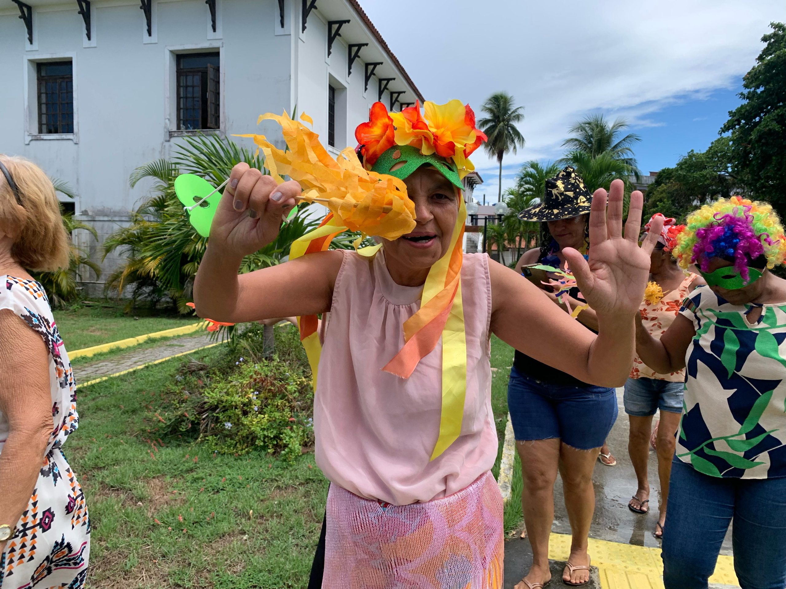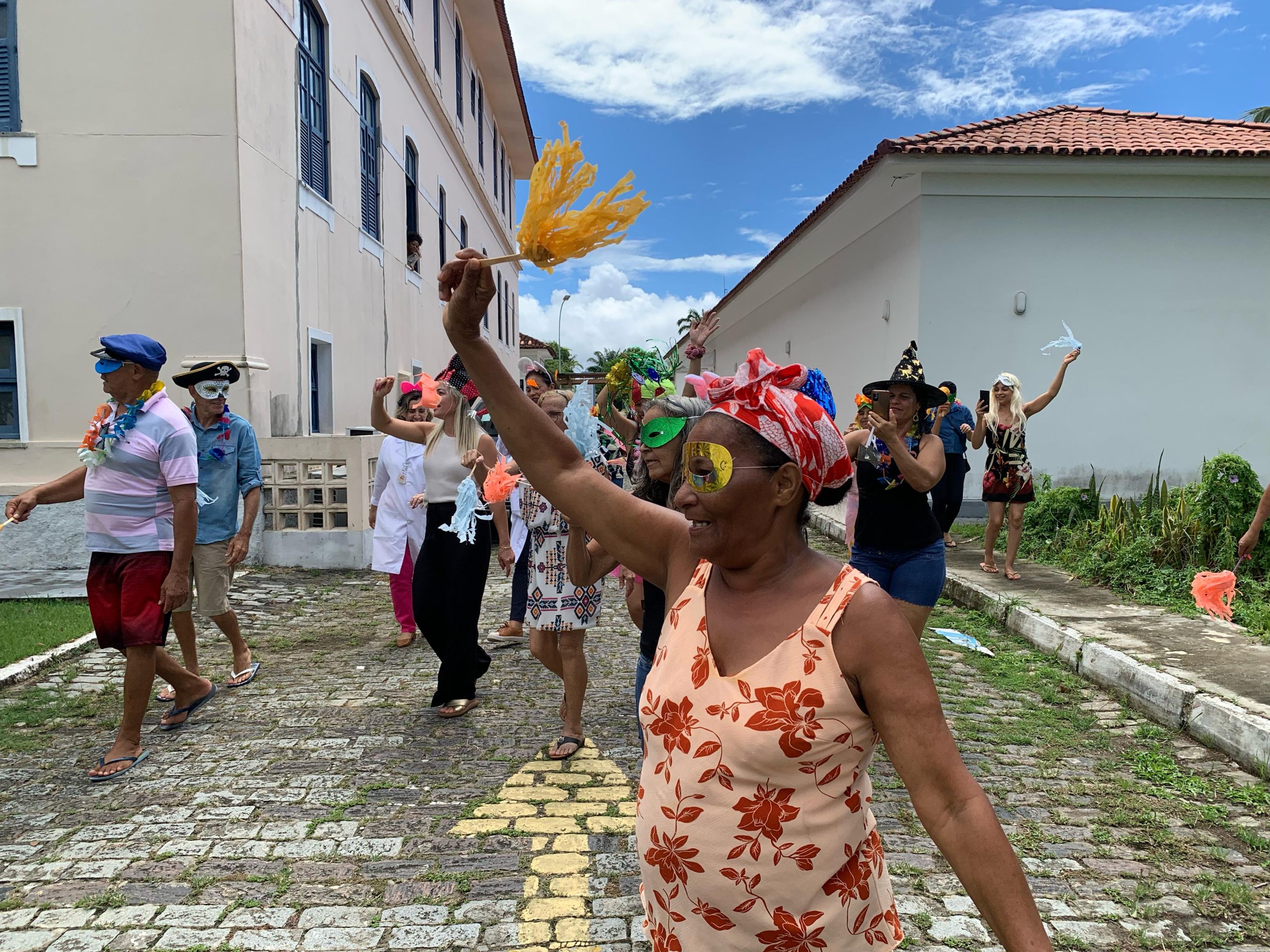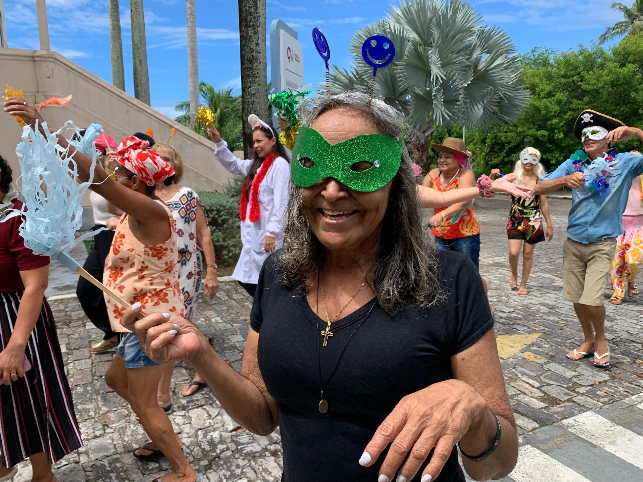 Em seguida, ao som de axé e sucessos do Carnaval, todos percorreram a área externa da Casa de Apoio, a qual é cercada de verde. A terapeuta ocupacional, Fabiana Carvalho, conta que a programação foi pensada para que as pacientes possam vivenciar a época do Carnaval durante o tratamento oncológico. “Nosso objetivo é que elas celebrem a vida com a energia do Carnaval. Isso impacta na melhora da saúde, disposição e bem-estar de cada uma delas”, afirmou.
