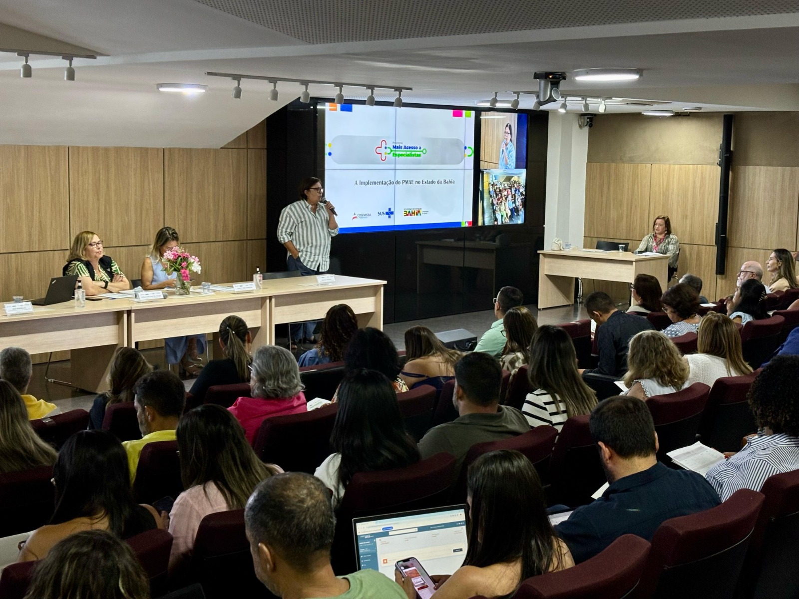Com objetivo de construir estratégias e diretrizes para a implementação do Programa Mais Acesso a Especialistas no estado, aconteceu nesta quarta-feira, 12, no auditório Lúcia Alencar, na Sesab, o Seminário de Implementação do PMAE na Bahia. O evento foi promovido conjuntamente pela Secretaria de Saúde do Estado (Sesab), pelo Conselho Estadual dos Secretários Municipais de Saúde da Bahia (COSEMS-BA) e pelo Ministério da Saúde.
