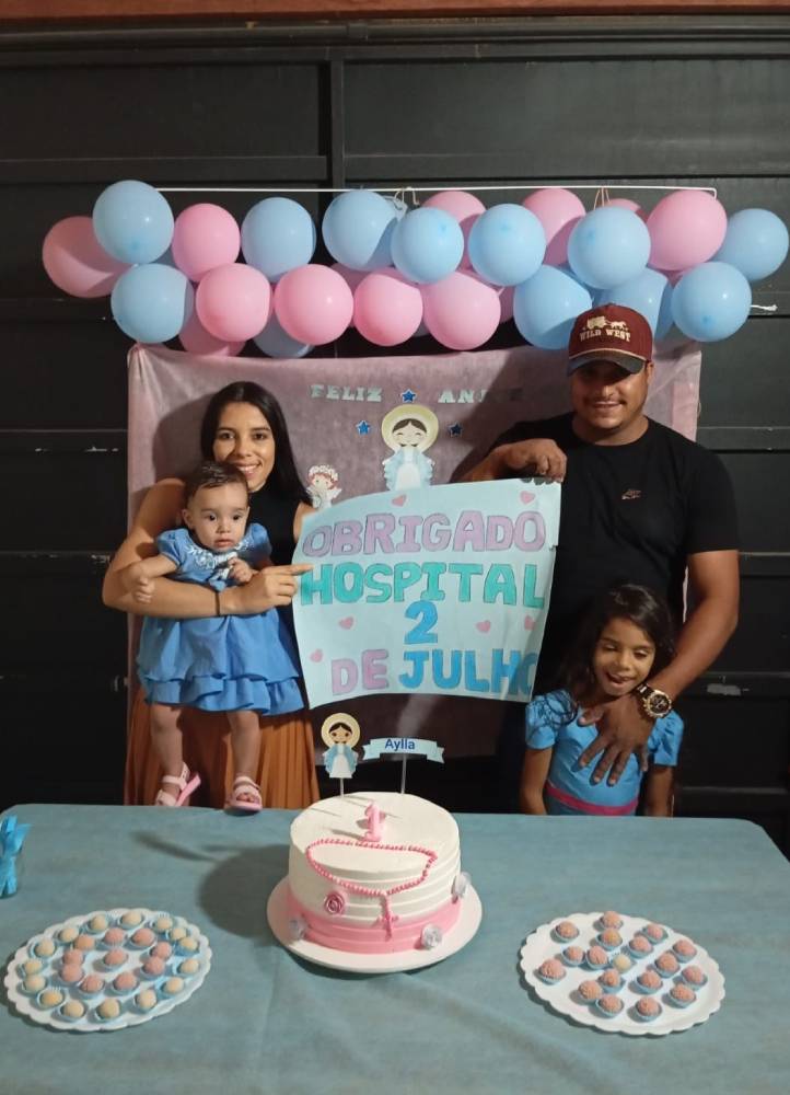 A pequena Aylla, moradora de Irecê, celebrou recentemente seu primeiro ano de vida em uma festa que contou com mais do que balões e bolo. Entre os sorrisos e a emoção da família, um cartaz chamou a atenção: “Obrigada, Hospital 2 de Julho”.
