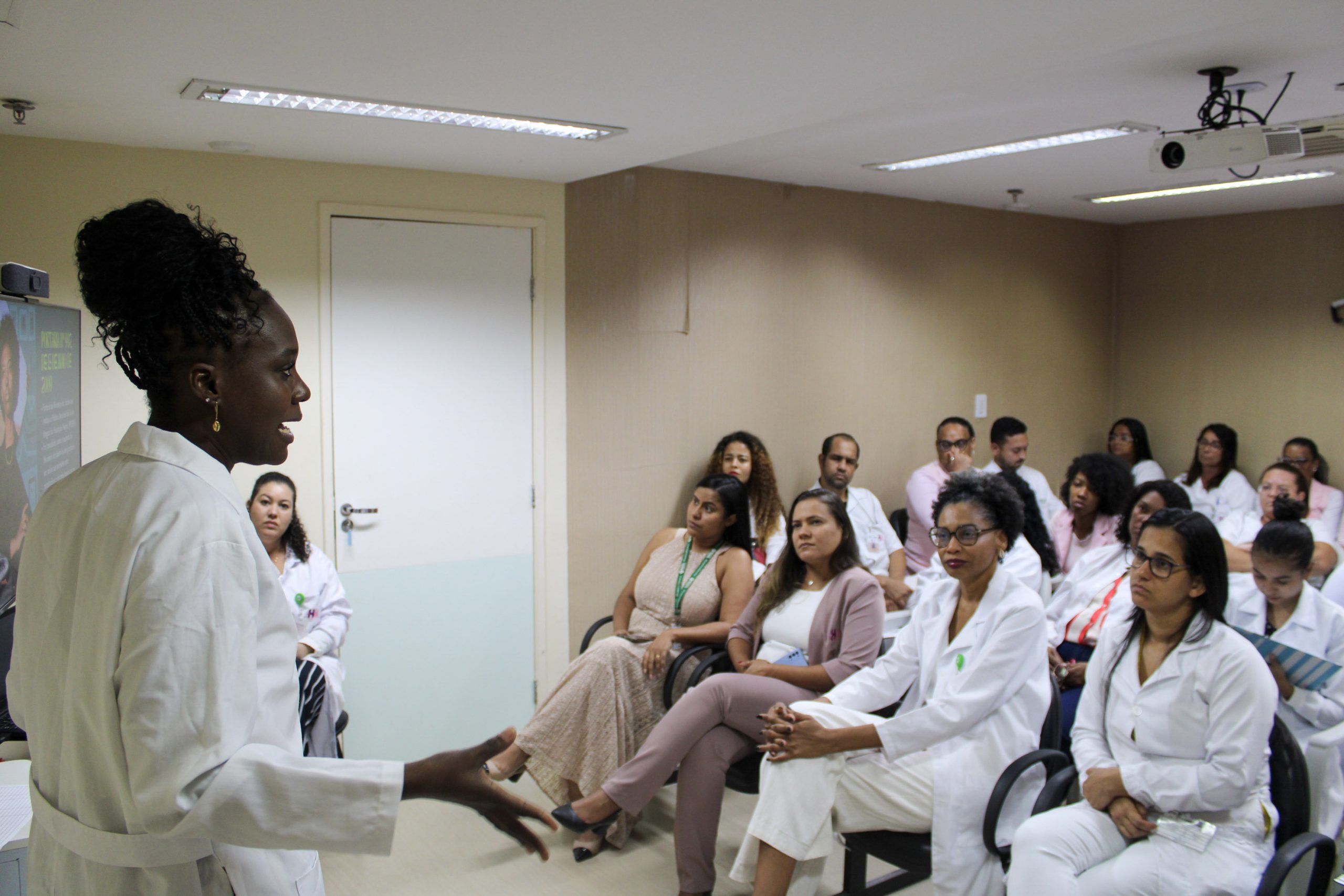 Ministrada pela assistente social Fernanda Borges, a iniciativa promoveu reflexões sobre o racismo e condutas para combatê-lo. “Refletimos como a implementação da PNSIPN no cotidiano dos profissionais de saúde é um processo contínuo que exige compromisso, reflexão e ação. Cada profissional tem um papel fundamental na promoção da equidade racial e na garantia de um atendimento de qualidade para todas as mulheres, especialmente as negras, que historicamente enfrentam barreiras no acesso à saúde”, destacou a profissional. “Ao adotar essas práticas, o Hospital da Mulher pode se tornar um exemplo de instituição comprometida com a justiça social e a saúde integral da população negra”, assegurou.