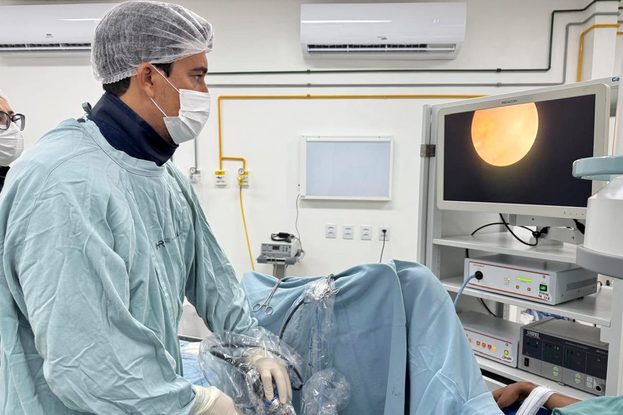 A endourologia é uma técnica minimamente invasiva, sem cortes, utilizada principalmente para tratar cálculos no trato urinário. Responsável pela cirurgia, o urologista Osvaldo Neto, conduziu o procedimento como parte de um projeto piloto voltado para a interiorização de cirurgias urológicas no estado. Na ocasião, três pacientes foram operadas com sucesso. Elas sofriam com cálculos no ureter, canal que liga o rim à bexiga, causando dores intensas e risco de perda da função renal. As pacientes receberam alta no mesmo dia, livres das obstruções que comprometiam sua qualidade de vida.