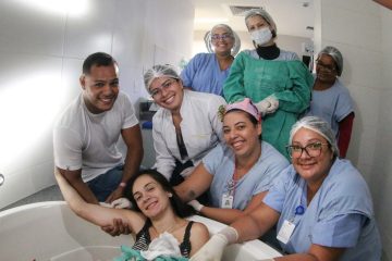 O parto de Rebeca Alves, 26 anos, foi realizado na Maternidade Regional de Camaçari. Mãe de primeira viagem, ela escolheu dar à luz em uma banheira, com o apoio do marido, Alex Caetano. “Foi um conforto ter a companhia dele, me senti tranquila, pude relaxar”, contou. “Se tiver outro filho, farei de novo na banheira.”