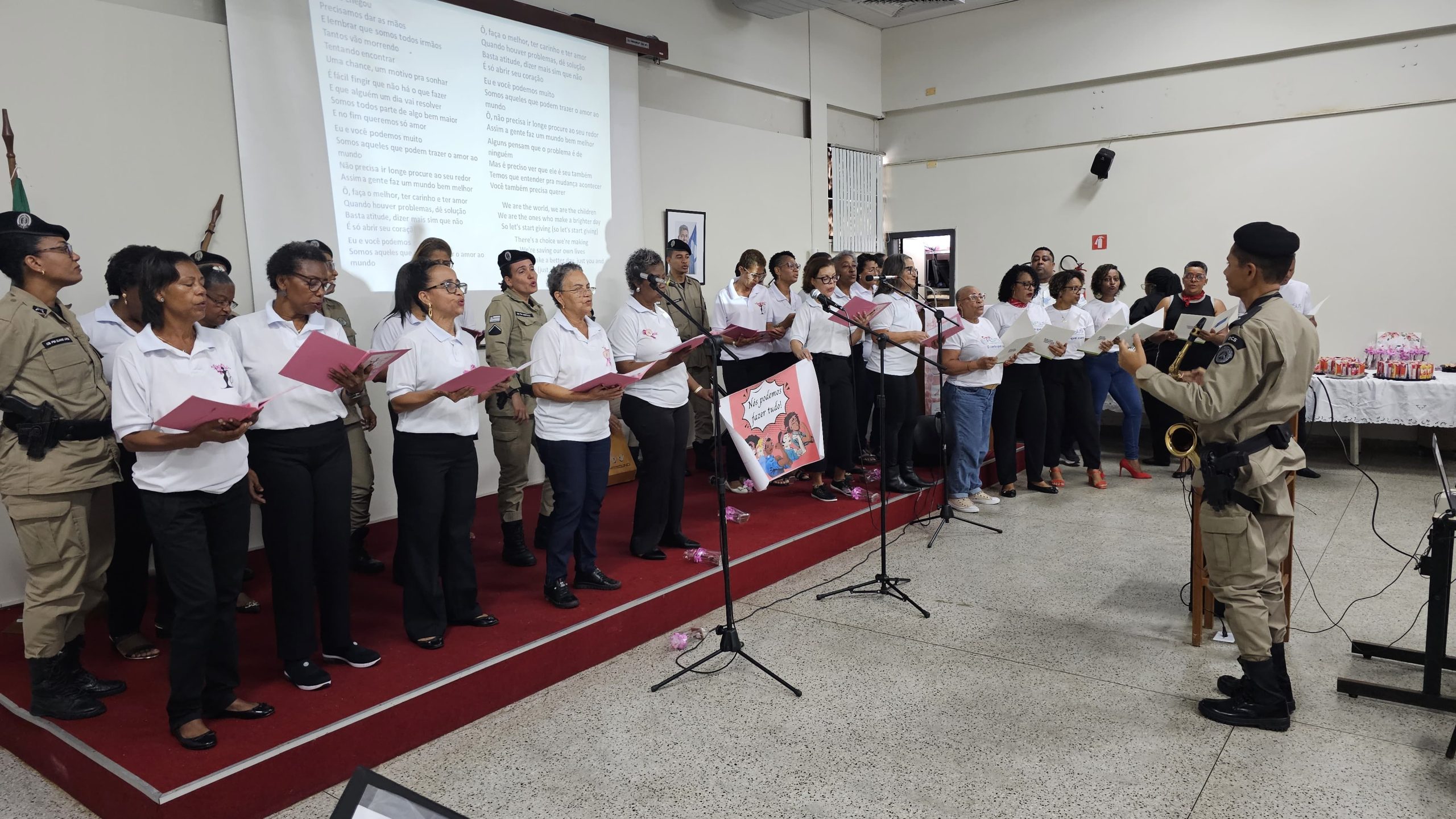 O momento de abertura já deu o tom da celebração. A soldado Adriana, da Polícia Militar da Bahia, conduziu uma animada sessão de alongamento, seguida por exercícios de aquecimento vocal conduzidos pelas cabos Mirian e Ariane, colocando todos os presentes para “soltar a voz” em clima de integração e descontração.