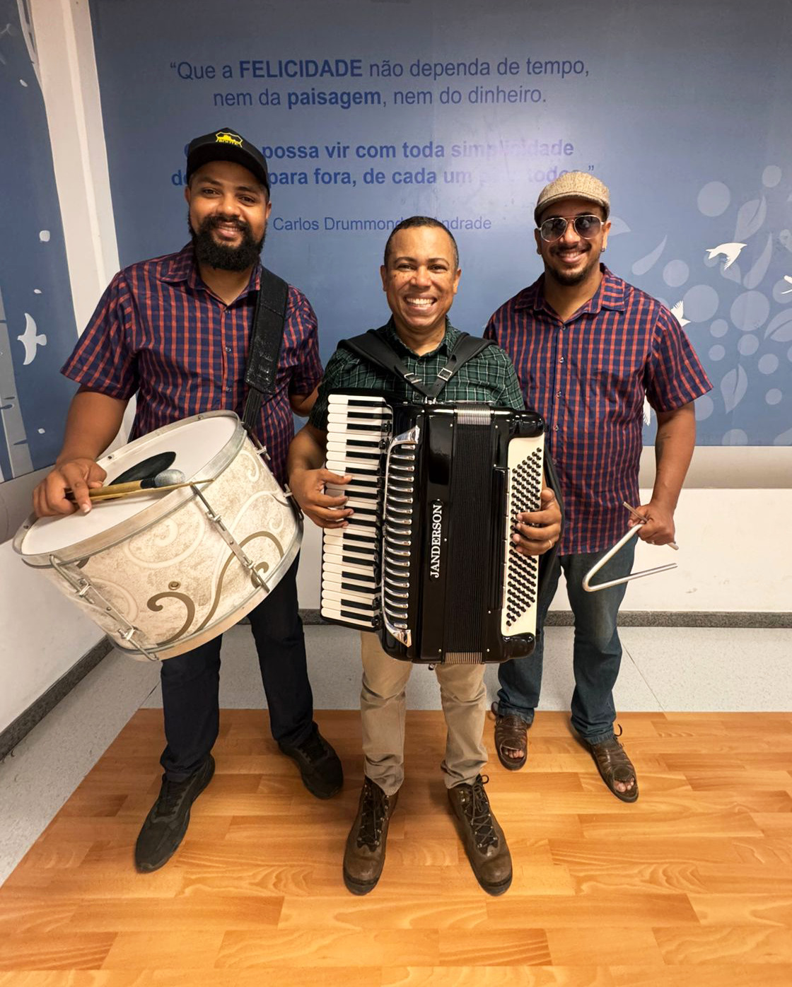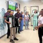 O lançamento do Junho Vermelho contou com a apresentação de Janderson do Acordeon e banda, formada por Vitor Santos (zabumba) e Gabriel Rosario (triângulo). “É motivo de alegria para a gente levar um pouco dessa cultura para animar as pessoas que estão passando por momentos difíceis”, disse Janderson. Os músicos destacaram a importância de levar a música aos pacientes que não podem curtir os festejos juninos fora do hospital, reforçando também a mensagem de solidariedade.