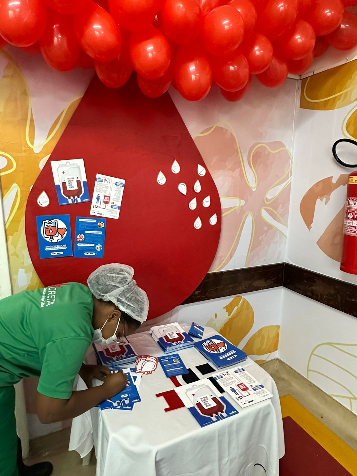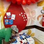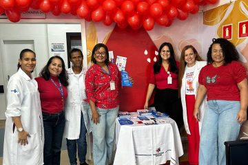 Com uma abordagem acolhedora e participativa, os colaboradores foram convidados a escrever mensagens de apoio e conscientização sobre o ato de doar sangue. As frases, afixadas em um painel montado especialmente para a ocasião em formato de uma gota de sangue, formaram um mosaico de solidariedade. Além disso, em um gesto simbólico e de união, os profissionais da unidade vestiram-se de vermelho, cor que representa a vida e o ato de doar.