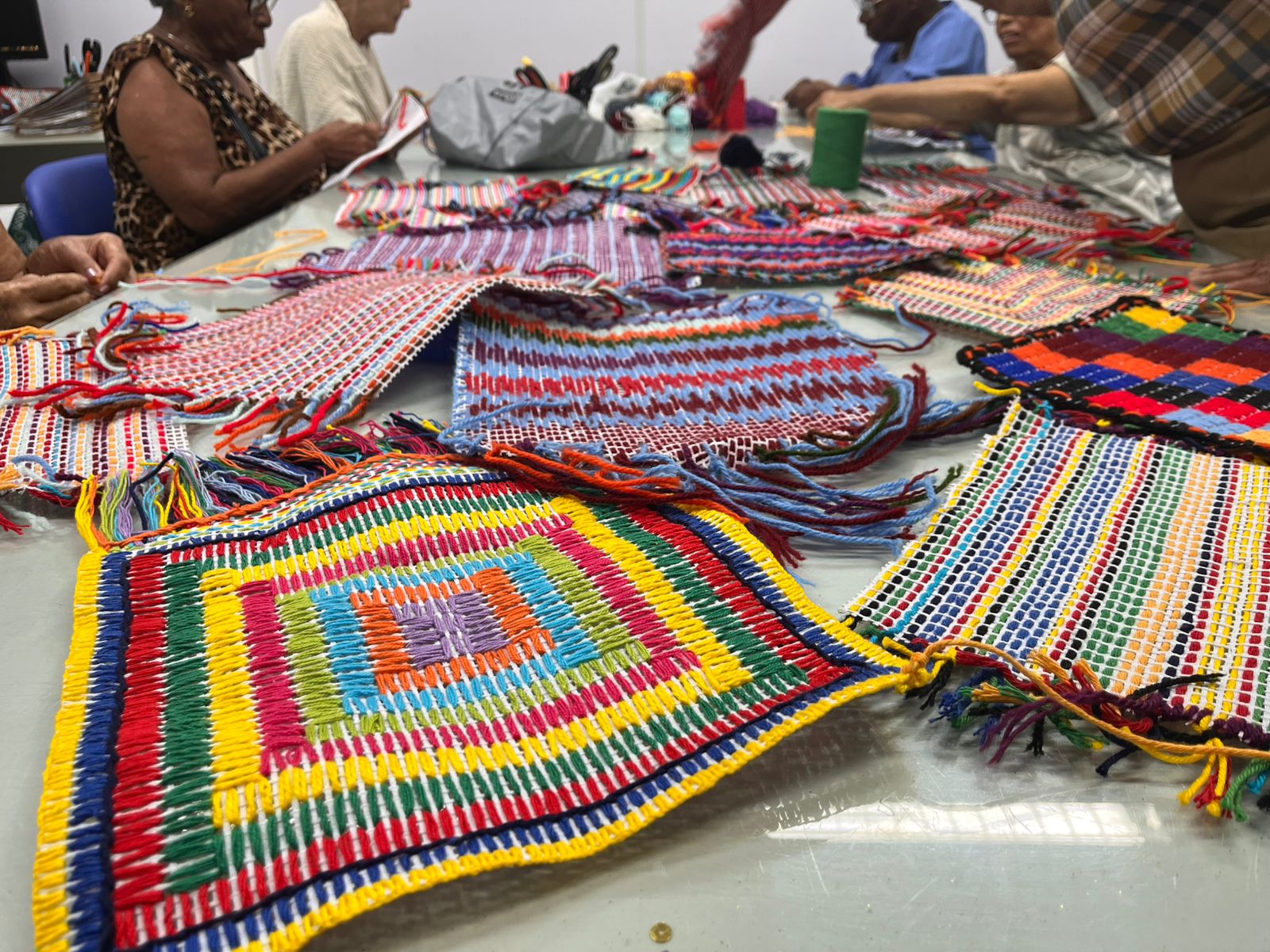 No período de 10 a 30 de julho os corredores do Centro de Referência Estadual de Atenção à Saúde do Idoso (Creasi) receberam o colorido da exposição “Tapeçarias”. As produções foram elaboradas por pacientes do Núcleo de Atenção Gerontológica (NAG), como atividade do grupo terapêutico Longeviver, formado por oito idosas, acompanhadas pela Terapeuta Ocupacional Iramaia Nunes, e com o apoio da estagiária Viviane Rebouças.