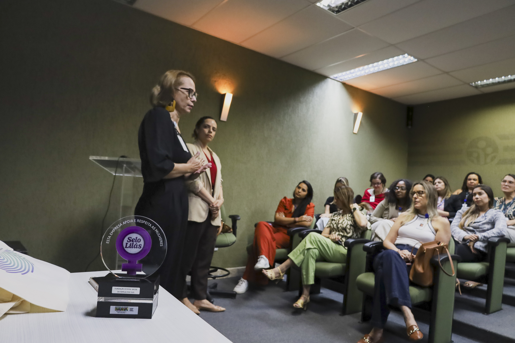 O evento ocorre logo após a FESF-SUS receber o Selo Lilás, concedido pelo Governo da Bahia, por meio da Secretaria de Políticas para as Mulheres. O certificado reconhece empresas e instituições que mantêm mulheres em cargos de liderança, promovem diversidade, oferecem canais seguros contra assédio e adotam ações concretas para reduzir desigualdades no trabalho. “A construção de uma sociedade mais justa e igualitária só será efetiva com a participação das mulheres. O Selo Lilás reconhece boas práticas e incentiva uma nova cultura de cuidado no ambiente de trabalho, com mais direitos, respeito e valorização profissional”, pontuou a secretária de Políticas para as Mulheres, Neusa Cadore, no lançamento da certificação.