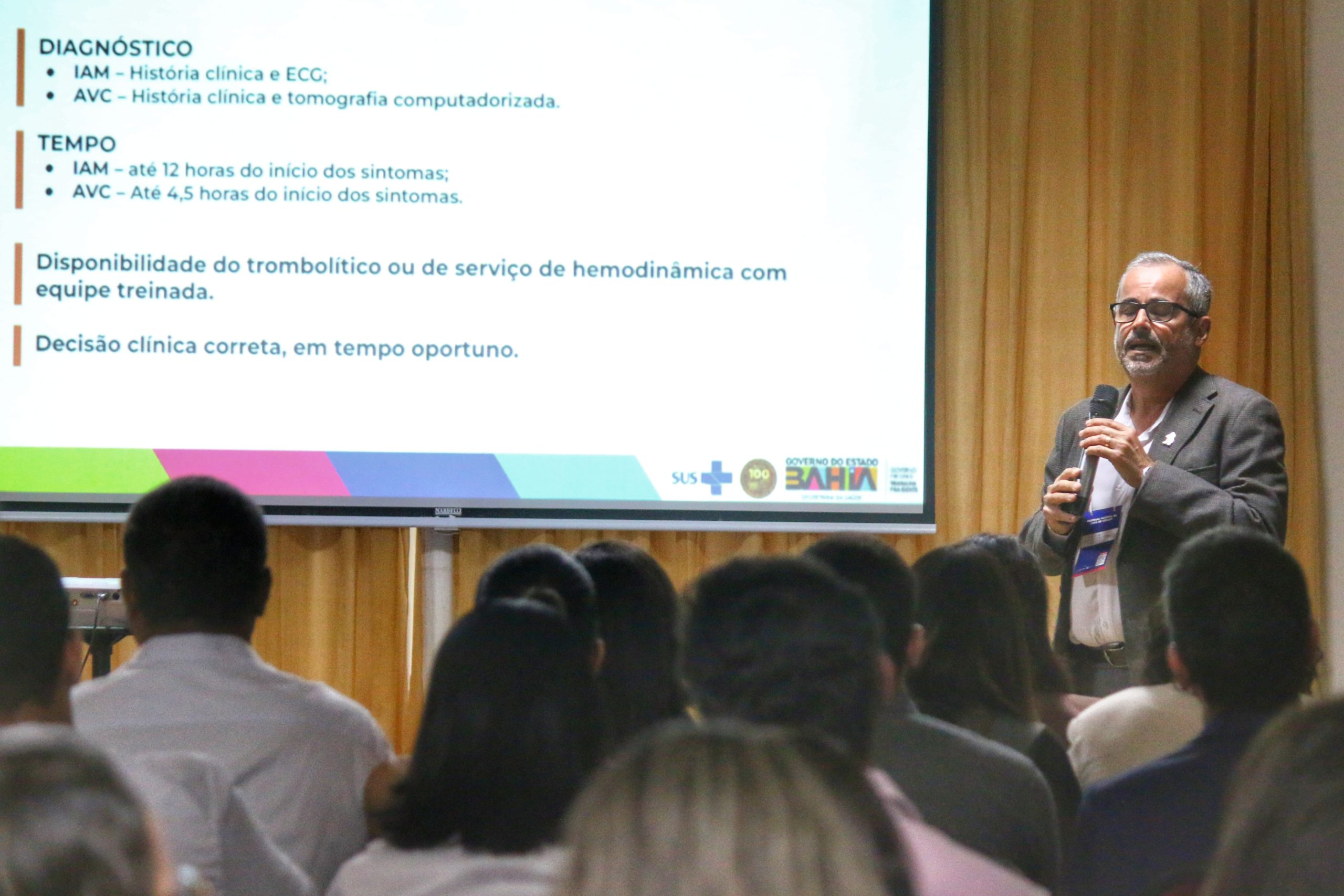 Representando a Bahia, ele apresentou um panorama sobre os avanços da rede de atenção no estado, destacando a implantação do Programa Estadual de Apoio à Reperfusão do Infarto Agudo do Miocárdio (IAM) e do AVC Isquêmico, iniciativa que busca reduzir a mortalidade e as sequelas decorrentes dessas doenças, que estão entre as principais causas de óbito na população adulta no estado.