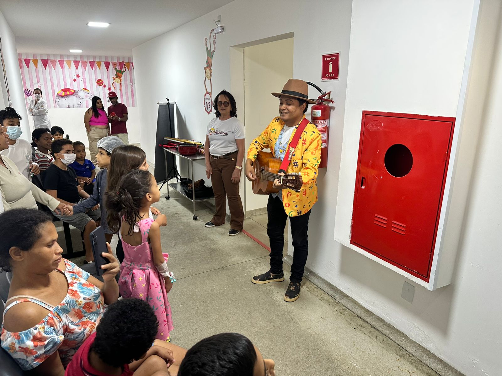 Na manhã desta sexta-feira (03), a pediatria do Hospital Geral de Vitória da Conquista (HGVC) recebeu uma visita especial, o Dr. Melodia, personagem criado pelo cantor, compositor e musicoterapeuta Alan Cruz, que atendeu de forma atenciosa o convite da Direção Geral do Complexo Hospitalar de Vitória da Conquista (CHVC).