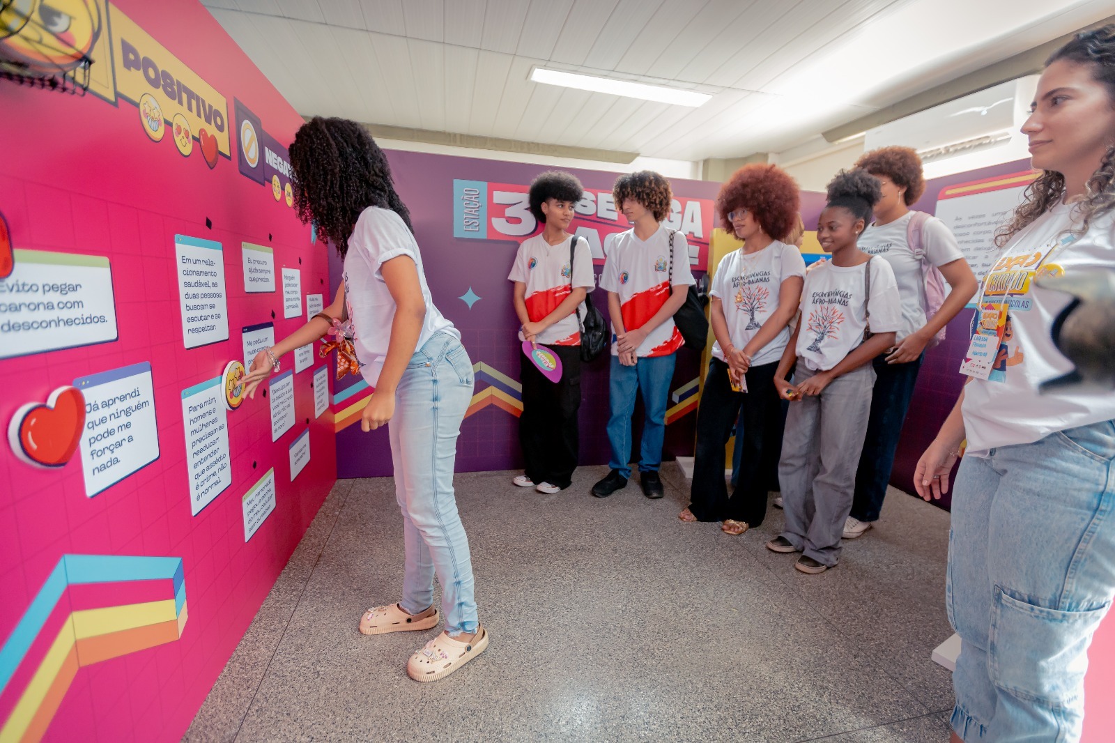 Uma mostra interativa, denominada de Expo do Cuidado, voltada à prevenção da gravidez não intencional na adolescência, foi aberta oficialmente, nesta terça-feira (2), no Instituto Anísio Teixeira (IAT), em Salvador. Na sua segunda edição, a exposição integra o projeto Oxe, me respeite nas escolas e permanecerá aberta para visitação de estudantes até março de 2026, no IAT. Direcionada a adolescentes e jovens de 12 a 19 anos, do 6º ao 9º ano e Ensino Médio, a Expo oferece uma experiência imersiva sobre autonomia corporal – prevenção da gravidez não desejada-, relacionamentos respeitosos, saúde sexual e reprodutiva e masculinidades positivas. O objetivo é que os adolescentes tenham informações de forma lúdica, de acordo com a faixa etária, e possam fazer escolhas voluntárias, com responsabilidade, sobre suas vidas e corpos.