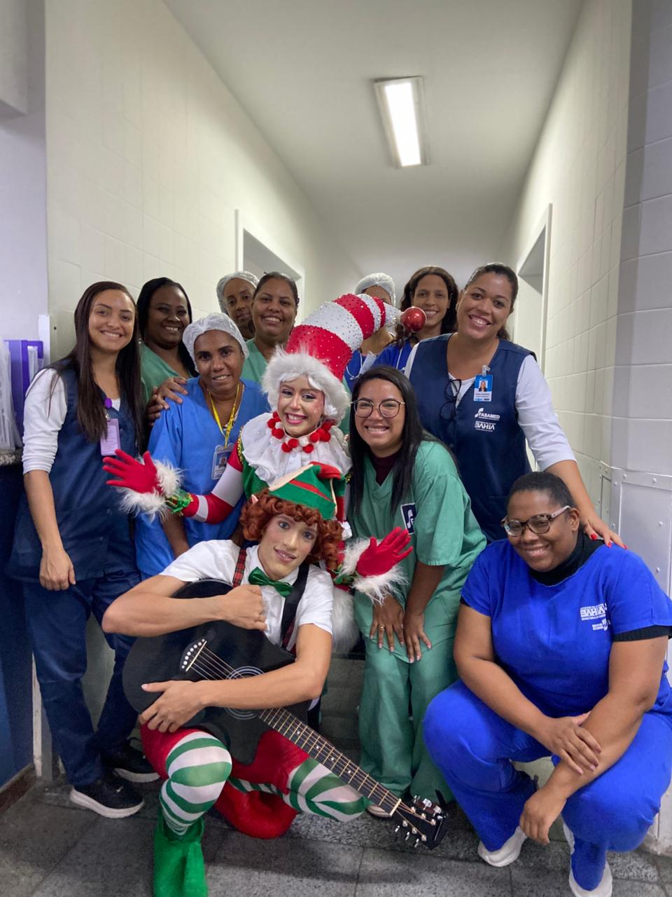 O Hospital Estadual 2 de Julho, unidade da Secretaria da Saúde do Estado da Bahia (Sesab) gerida pela Fundação Fabamed, promoveu uma tarde de acolhimento e leveza com a visita dos Elfos Encantados, integrantes do grupo Faz de Contos. A ação percorreu as alas pediátricas da unidade e levou o espírito natalino a crianças em tratamento, familiares e profissionais de saúde.