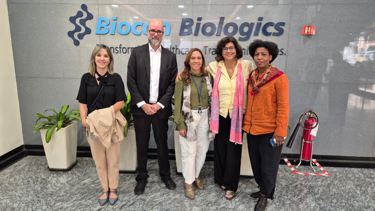 Durante a visita à Biocon, em Bengaluru, o foco foi a etapa técnica que antecede a transferência de tecnologia para produção no Brasil, em parceria com a Bahiafarma e a Bionovis, empresa nacional selecionada em chamada pública para atuar como parceira privada no processo de internalização e nacionalização da produção de biológicos.