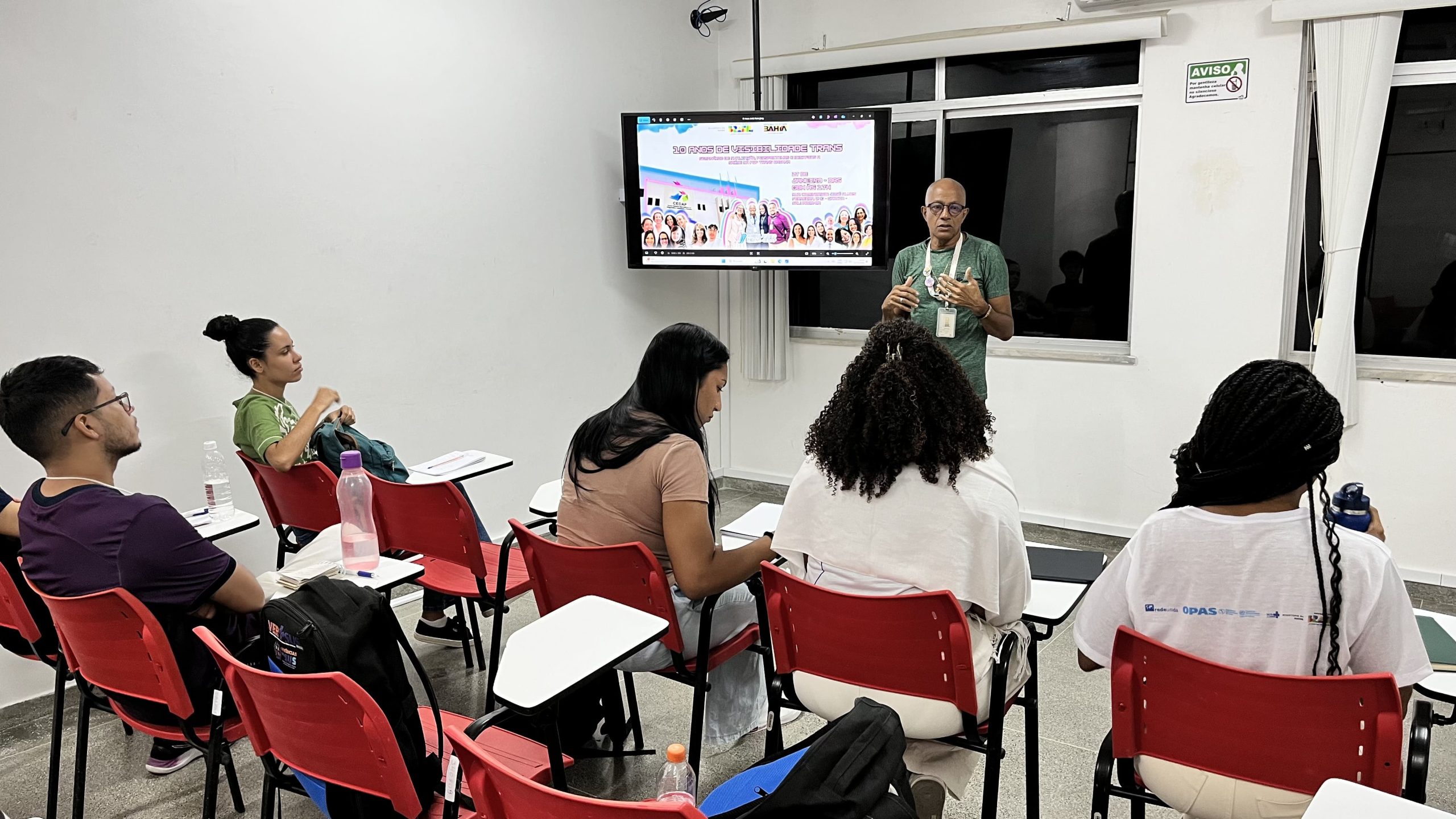 Em seguida, o coordenador do Ambulatório Trans do CEDAP, Dr. Ailton Santos, apresentou o histórico de implantação e consolidação do serviço, abordando as especialidades envolvidas, os grupos de convivência temáticos e as estratégias de cuidado e acolhimento humanizado. Também foram discutidos os principais desafios enfrentados no cotidiano do atendimento, incluindo o enfrentamento ao estigma vivenciado pelos usuários, a importância da assistência farmacêutica e o uso de dados epidemiológicos como ferramenta para análise e aprimoramento das práticas, permitindo refletir de forma qualificada a realidade do serviço.