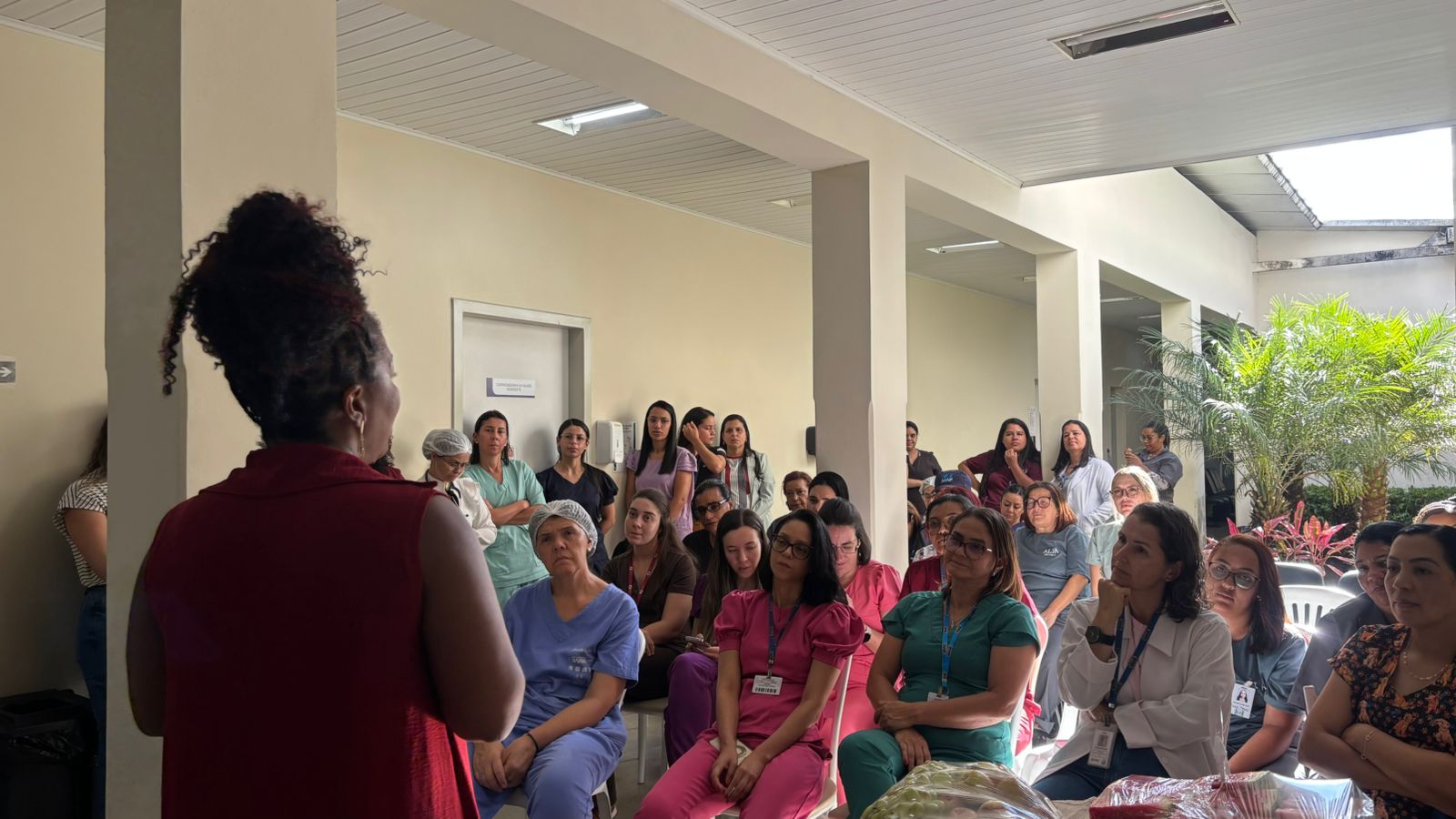 Além das atividades práticas, a programação contou com uma palestra voltada aos cuidados pessoais e à saúde mental, destacando a importância de olhar para si, mesmo diante das rotinas intensas e, muitas vezes, desafiadoras, especialmente no contexto da saúde.