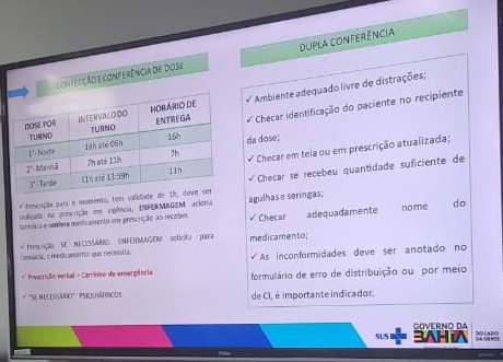 A capacitação aborda temas como: procedimentos operacionais padrão, protocolos do serviço de nutrição, educação alimentar, avaliação nutricional, segurança alimentar, sistema de distribuição e conferência das doses individualizadas de medicamentos, com foco na garantia da segurança do paciente.