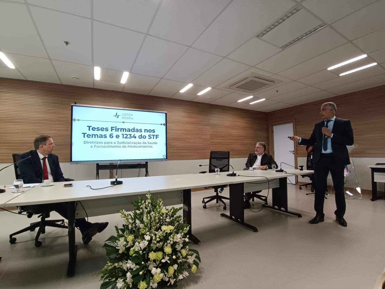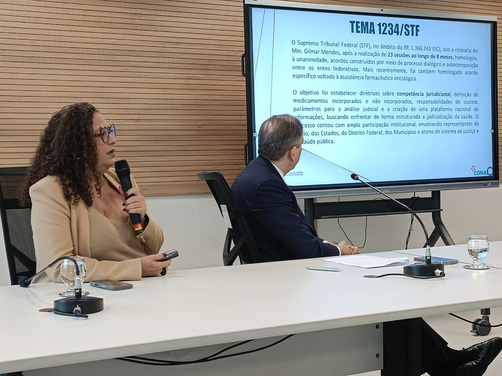 Outros dois painéis integraram o debate: “A análise dos fundamentos e dos impactos sistêmicos do Tema 1234”, conduzido pela doutora Mônica Lima, assessora jurídica do Conselho Nacional de Secretários de Saúde (Conass) e membro titular do Fórum Nacional do Judiciário para a Saúde (Fonajus); e “A perspectiva da Justiça Federal sobre a redistribuição de competência”, apresentado pelo juiz federal Alex Schramm, vice-coordenador do Comitê de Saúde da Bahia.