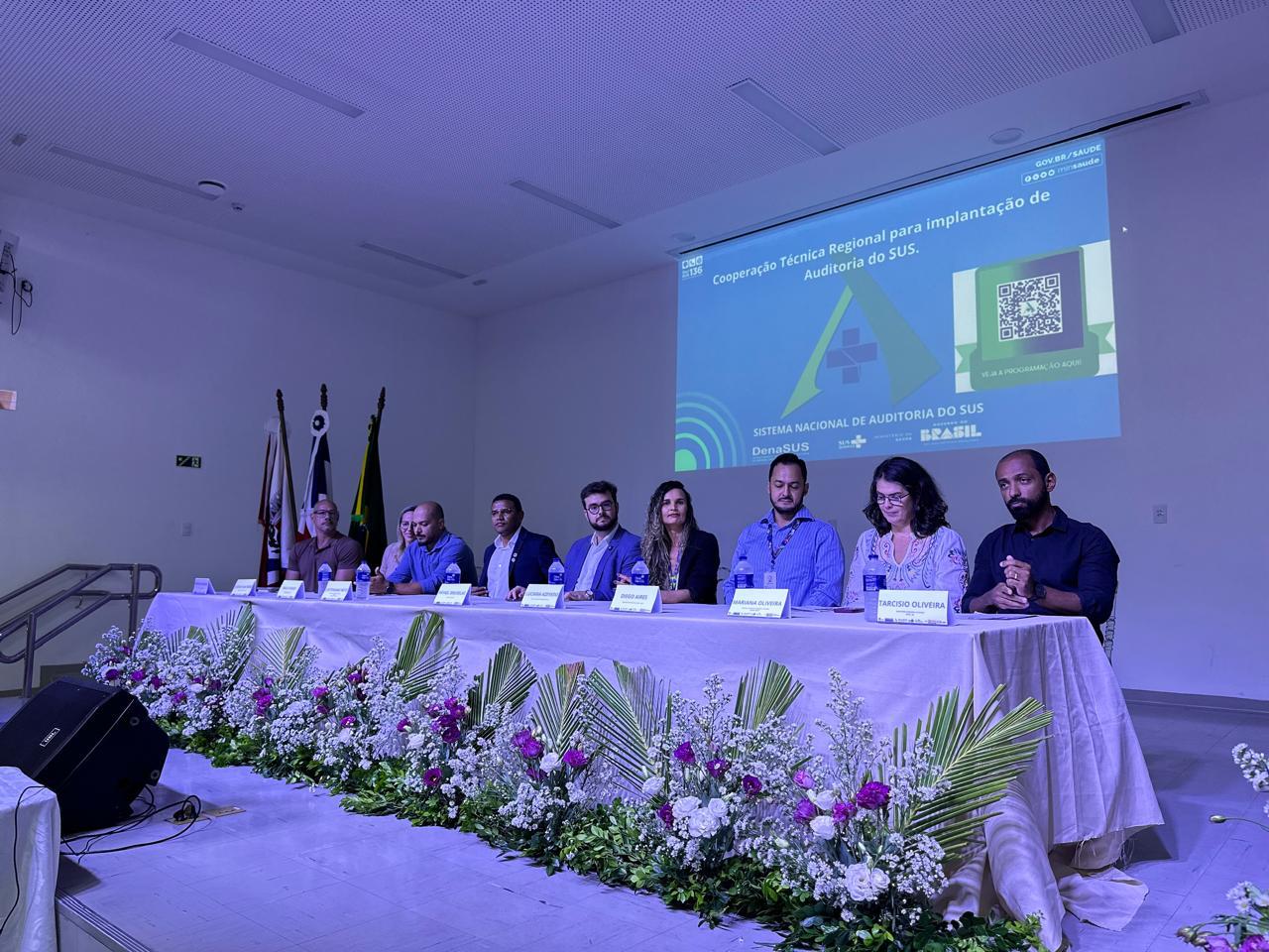 O evento contou com a presença do Diretor-Geral do DENASUS, Rafael Bruxellas, do Coordenador-Geral de Promoção do Sistema Nacional de Auditoria, Justiniano Neto, da chefe do Serviço de Auditoria do Ministério da Saúde na Bahia, Luciana Azevedo, além de secretários municipais de saúde e gestores de toda a região Centro-Norte.
