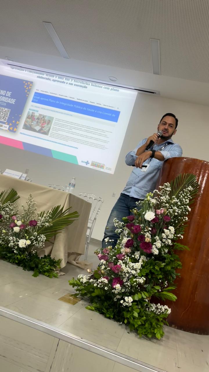 A Auditoria do SUS/BA esteve presente por meio do seu diretor, Diego Aires de Souza, convidado para ministrar palestra aos participantes e apresentar as experiências exitosas e os projetos estratégicos no âmbito do fortalecimento da integridade, da governança e do controle interno em saúde.