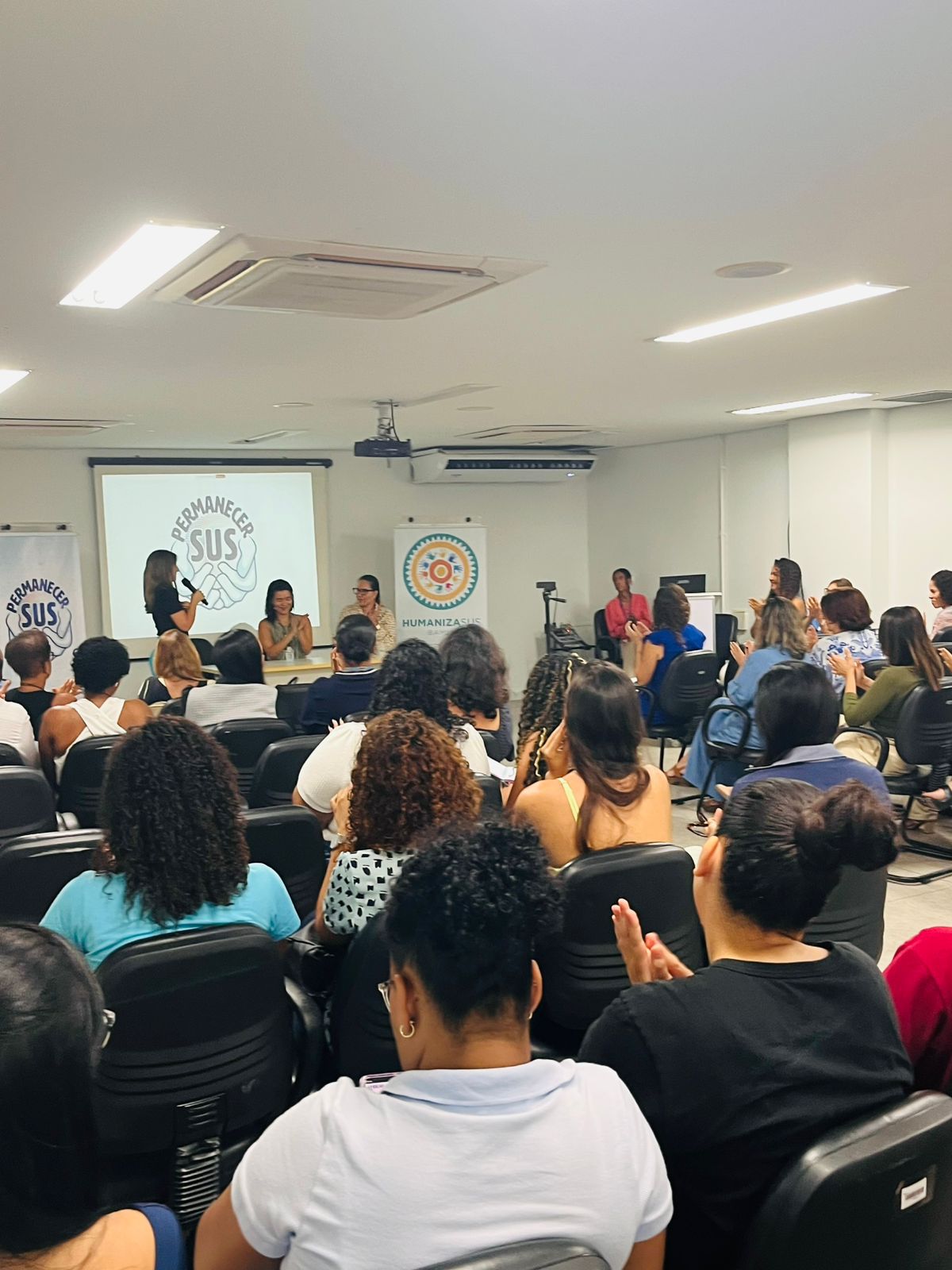 Um dos momentos mais marcantes foi o compartilhamento de experiências por egressas e egressos do programa que hoje atuam no SUS e em diferentes áreas, tanto na saúde quanto em outros campos profissionais. Os relatos evidenciaram como a vivência no PermanecerSUS contribuiu para a formação técnica e humana desses profissionais, reforçando valores como empatia, compromisso social e cuidado integral.