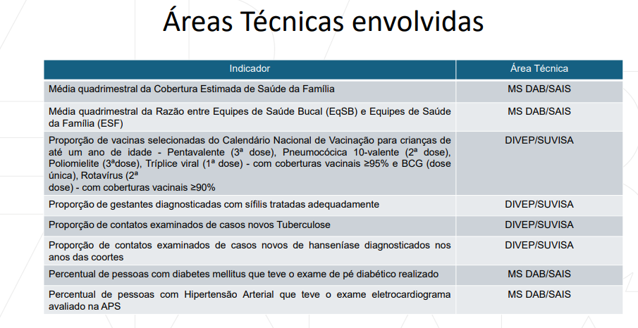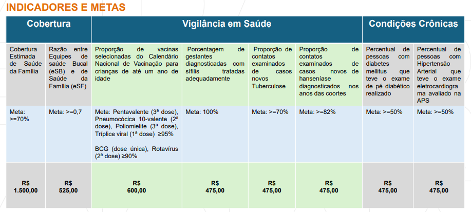 INDICADORES UTILIZADOS PARA CÁLCULO DO ALCANCE DE METAS DO NOVO COFINANCIAMENTO DA ATENÇÃO PRIMÁRIA À SAÚDE