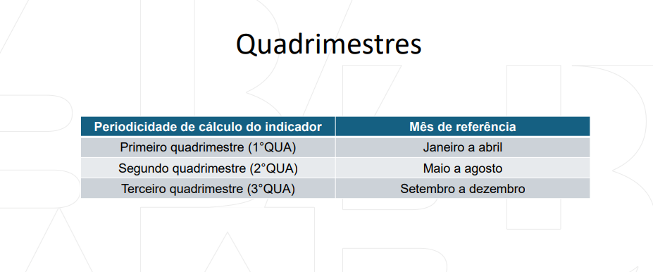 • Anual, mensal, semestral. Para o cálculo do cofinanciamento estadual das EqSF da APS será realizado quadrimestral.