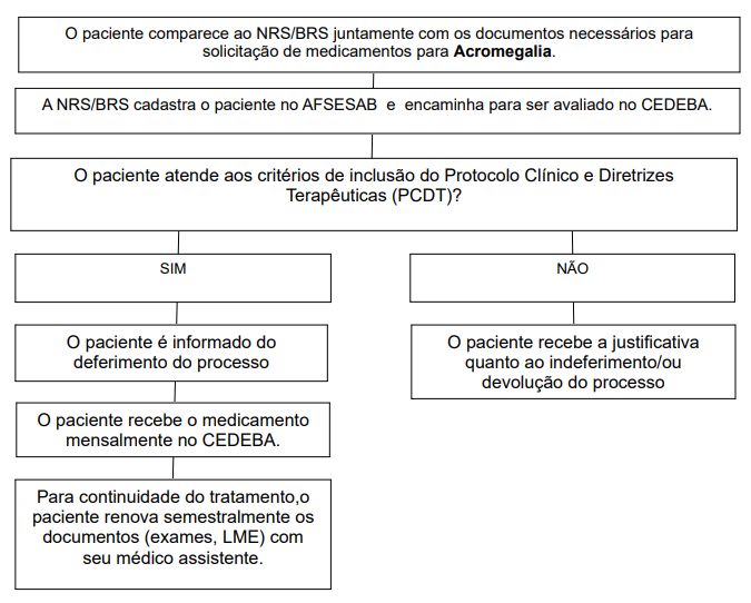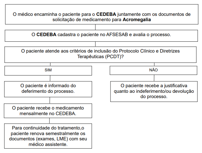 - Formulário de acesso aos Medicamentos para Acromegalia, preenchido e assinado e carimbado pelo médico do paciente. (Clique Aqui) OU