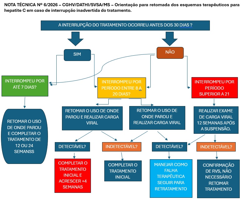 Orientação para retomada dos esquemas terapêuticos para hepatite C em caso de interrupção inadvertida do tratamento.